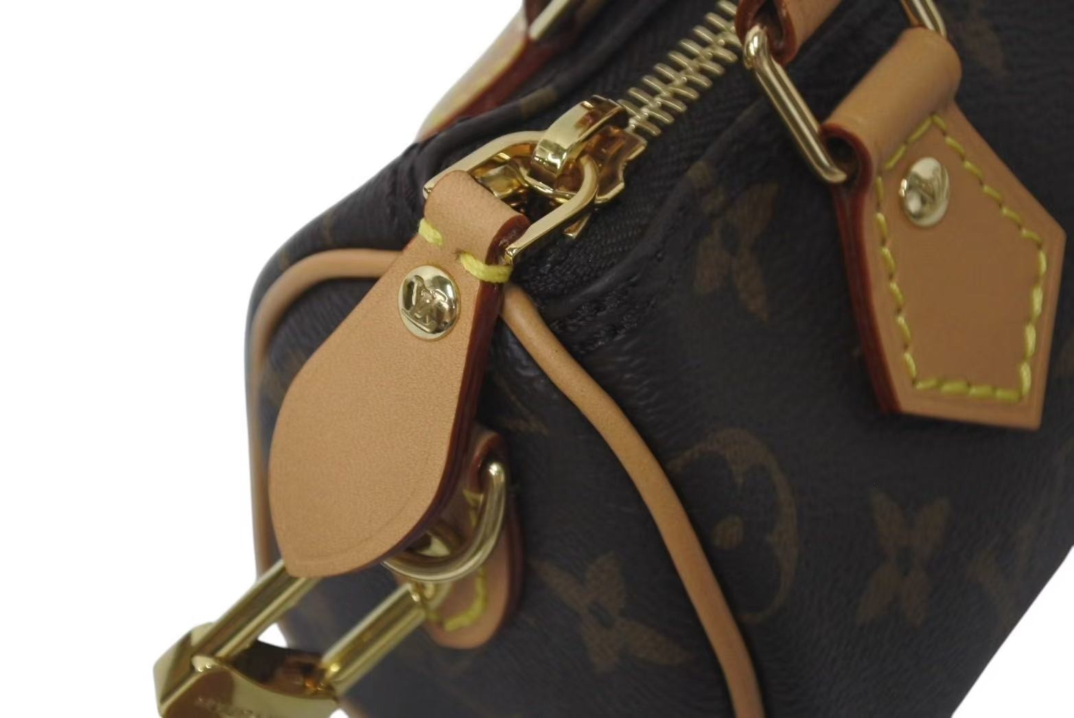 必需品を持ち歩くのに最適なバッグは、ナチュラルレザーとゴールドカラーの金具が美しいデザインを引き立てます。 2本のハンドルと、取外し & 調節可能なショルダーストラップで、様々な持ち方をお楽しみいただけます。