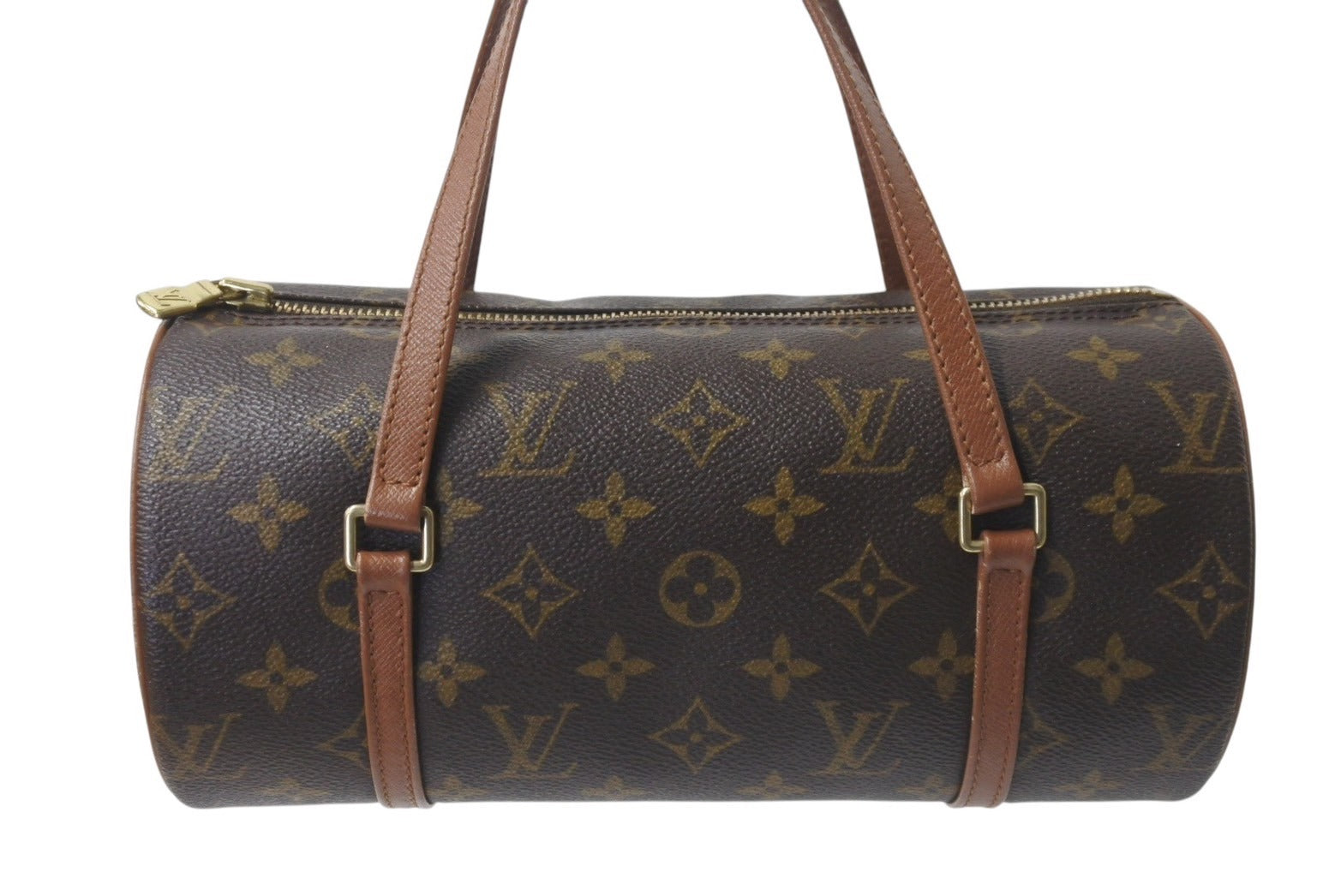 パイピングにスレあり。表面レザーにスレあり。金具にスレ、小傷、くすみあり。その他使用感の少ない状態です。