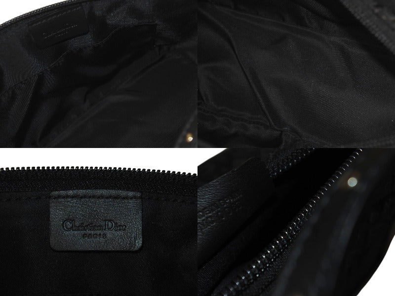 Dior ディオール トロッター ミニハンドバッグ 総柄 ブラック MC0063 コットンキャンバス レザー シルバー金具 中古 4c076402