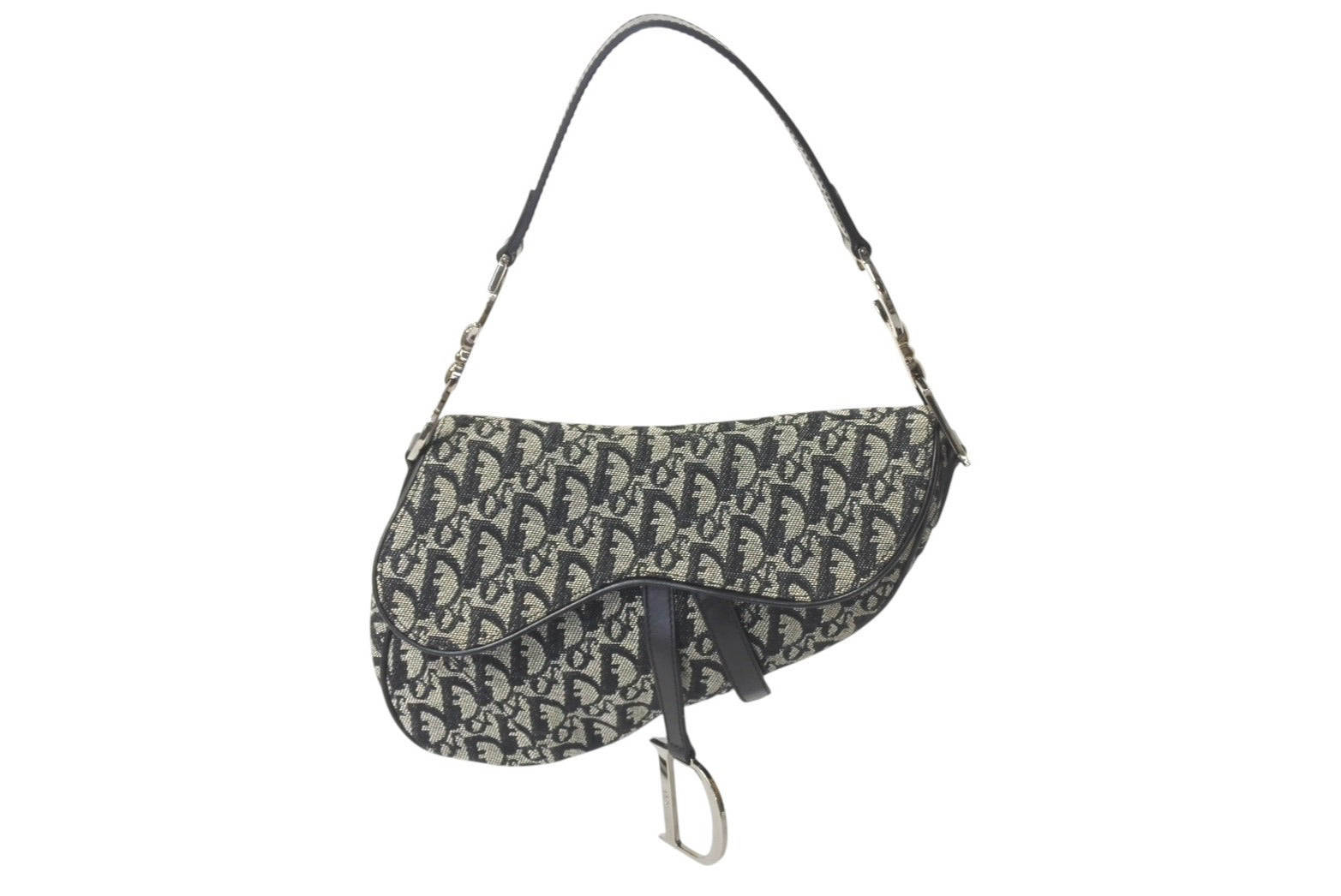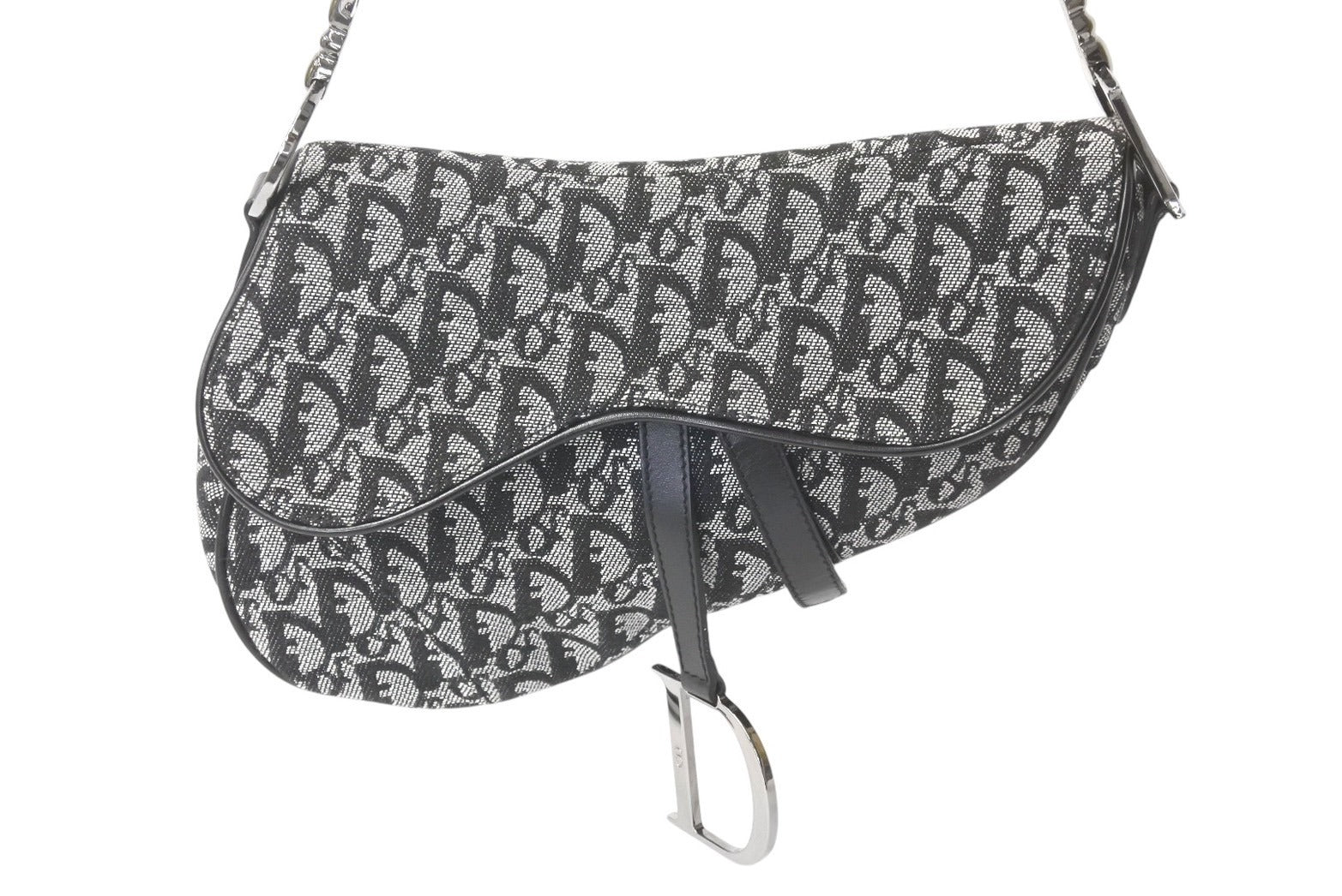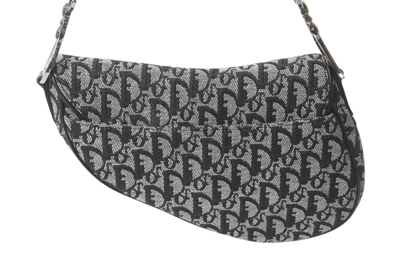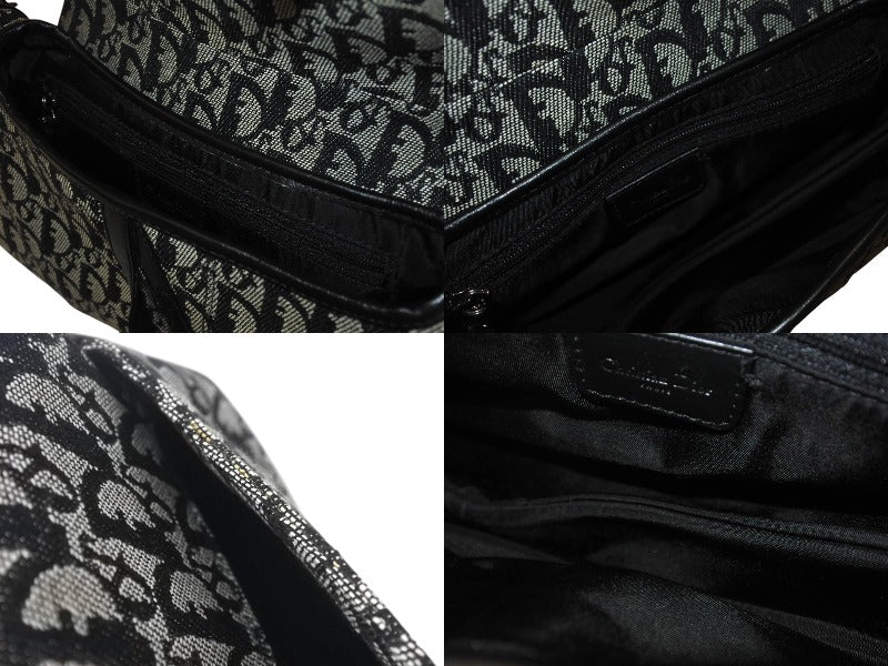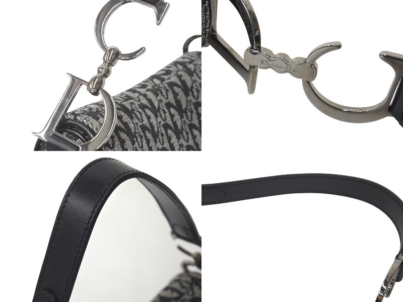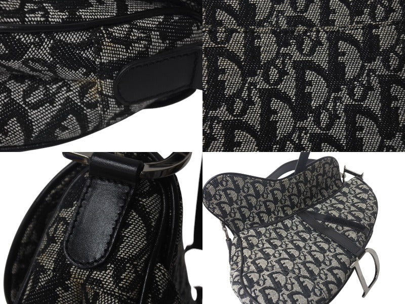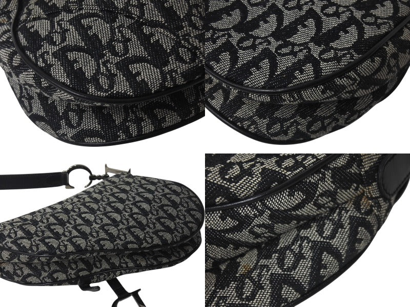 Christian Dior クリスチャンディオール トロッター サドルバッグ ブラック ガリアーノ期 シルバー金具 ワンショルダー ロゴ 美品 中古 4c076533