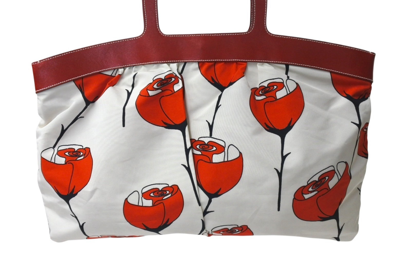 MIUMIU ミュウミュウ ハンドバッグ 花柄 チューリップ ホワイト レッド ナイロン レザー サイズ31 美品 中古 4c076631