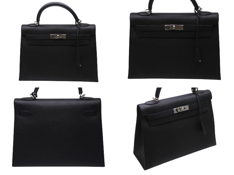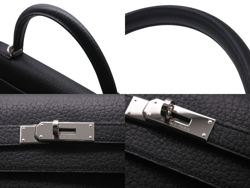 新品同様 HERMES エルメス ケリー32 外縫い ブラック □L刻印 トゴ シルバー金具 ハンドバッグ 2WAY 中古 4c076671
