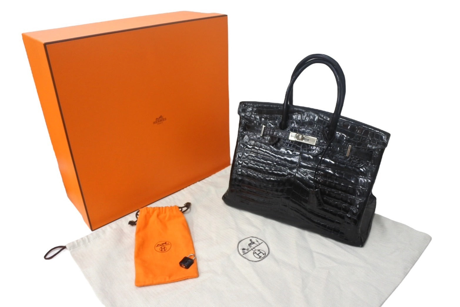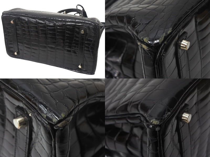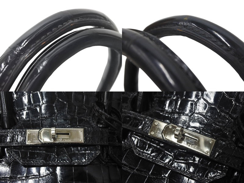 HERMES エルメス バーキン35 ブラック ニロティカス シルバー金具 ハンドバッグ □G刻印 中古 4c700019