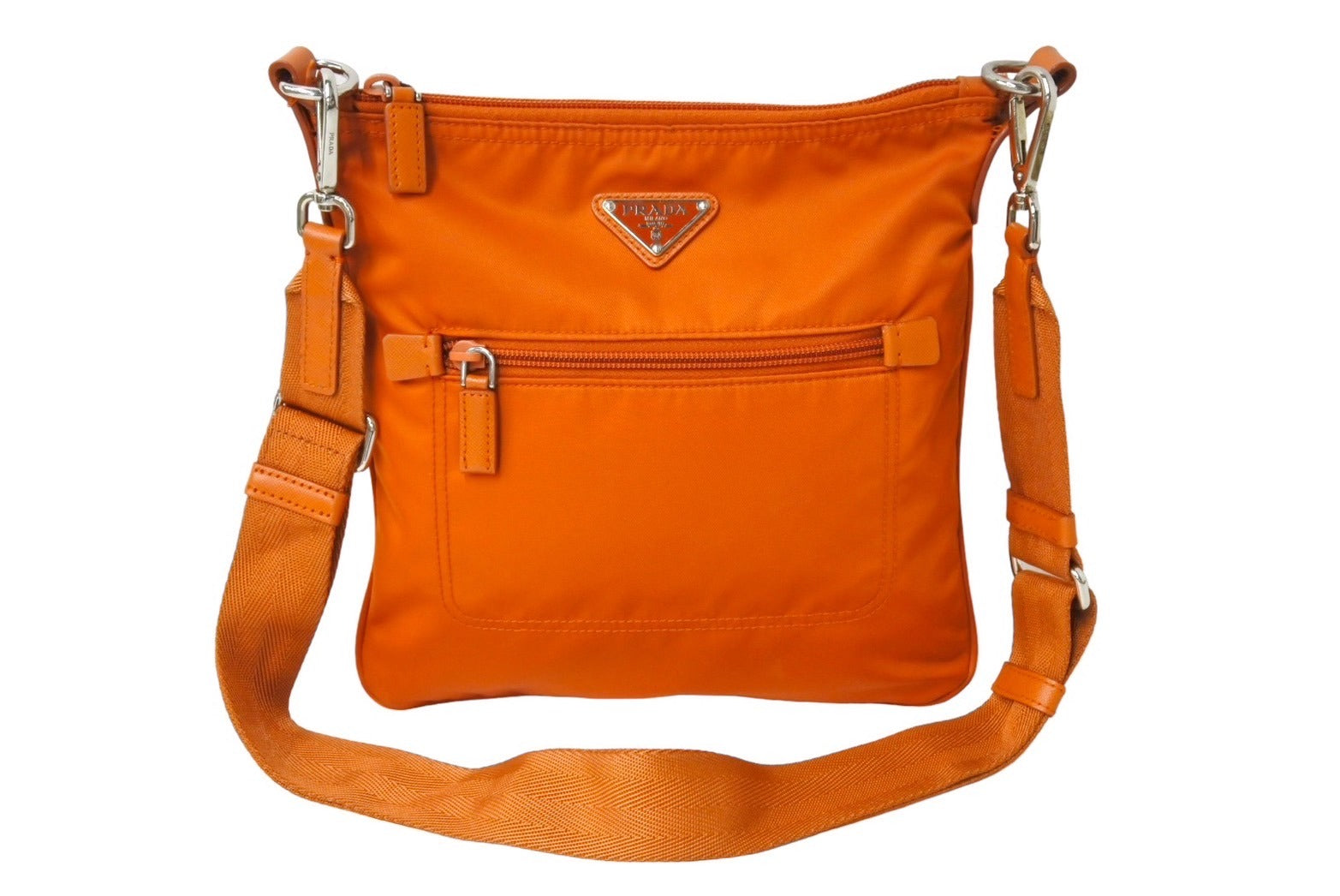 PRADA プラダ ショルダーバッグ トライアングルロゴ ナイロン オレンジ イタリア製 シルバー金具 良品 中古 66189