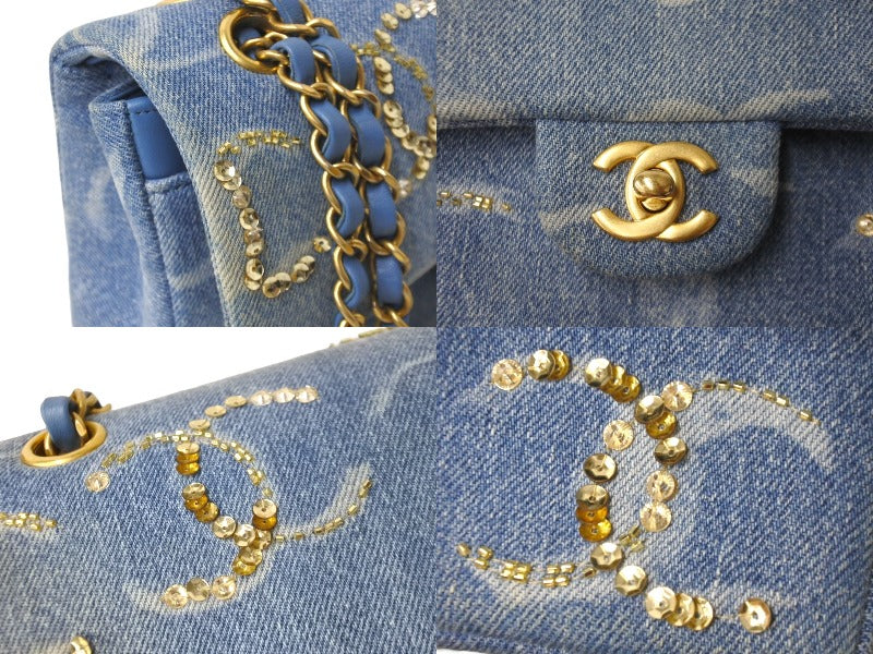 新品同様 世界完売品 CHANEL シャネル チェーンショルダーバッグ パーツ付き マトラッセ ランダム デニム ブルー ゴールド金具 62676