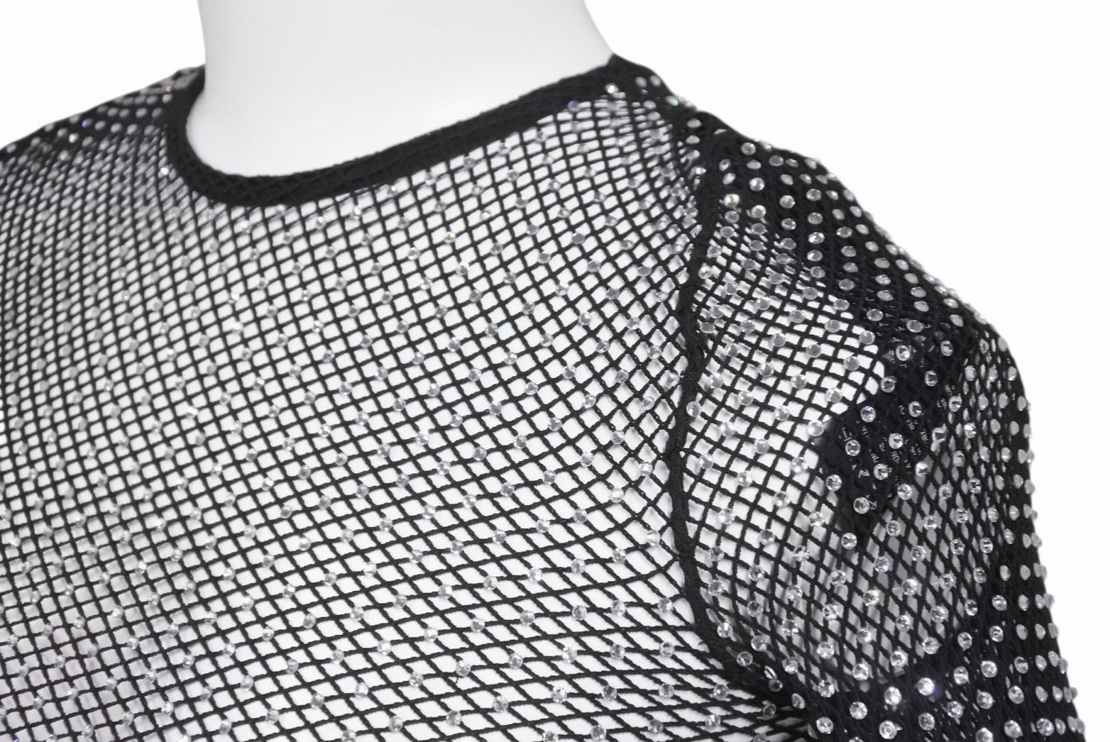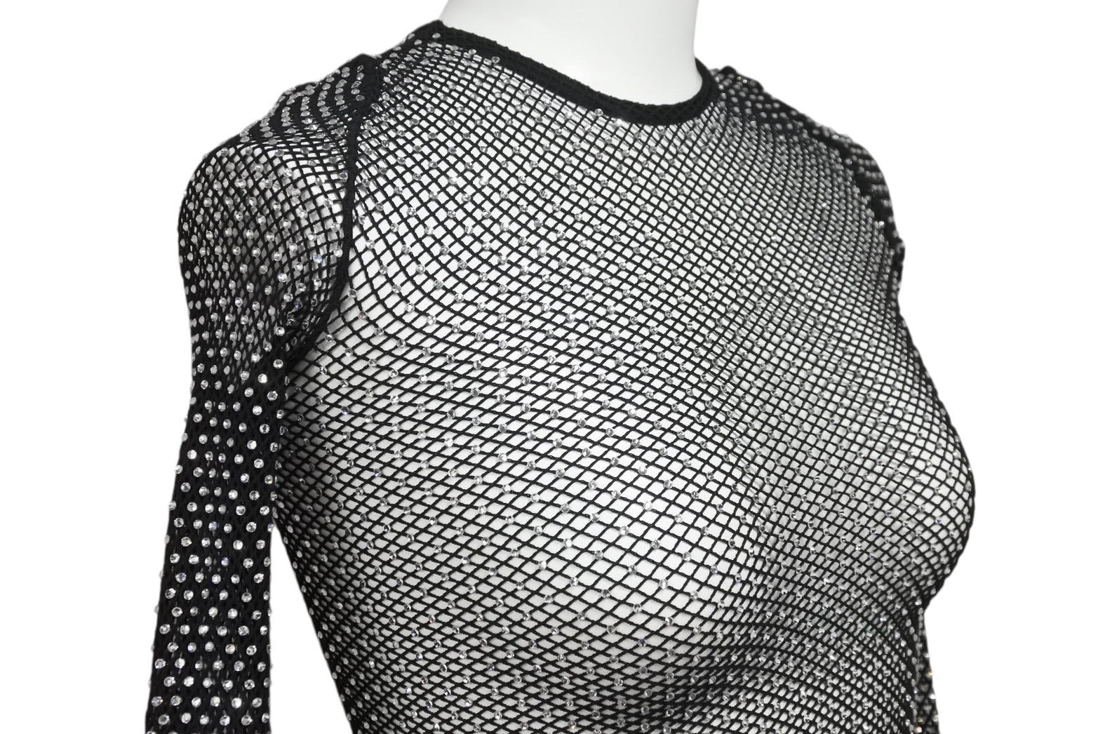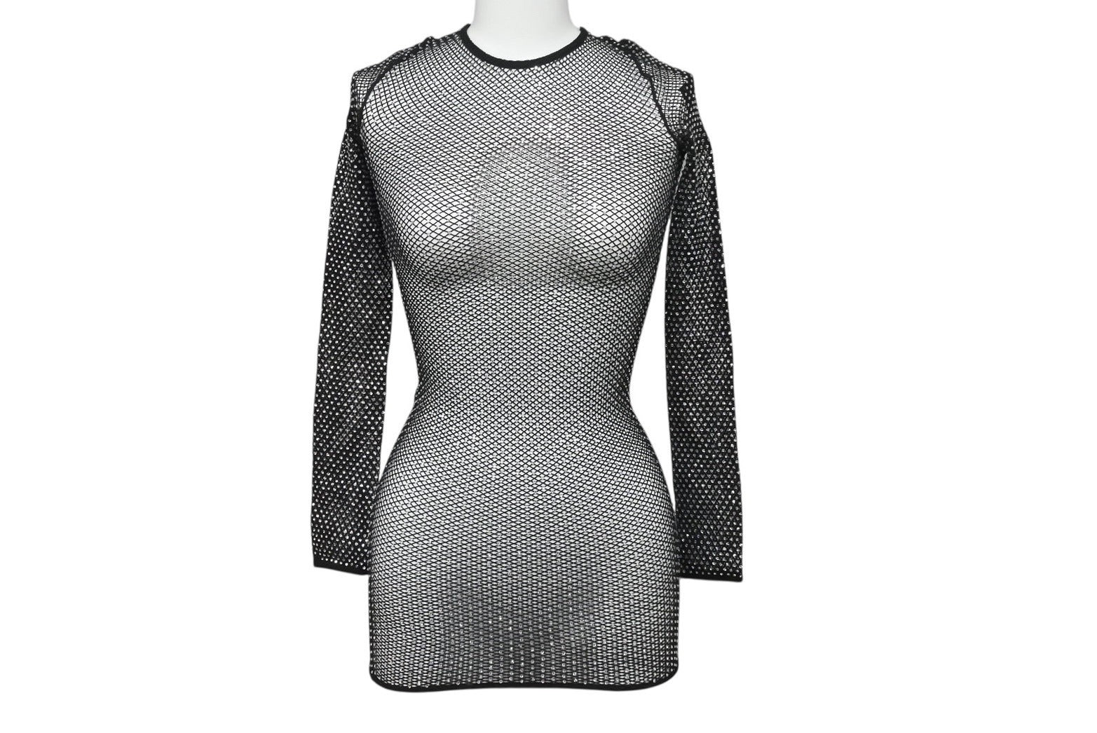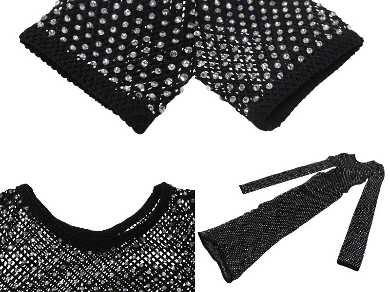 全面に散りばめられたクリスタルが光を反射し、圧倒的な存在感を放つラグジュアリーな一着。