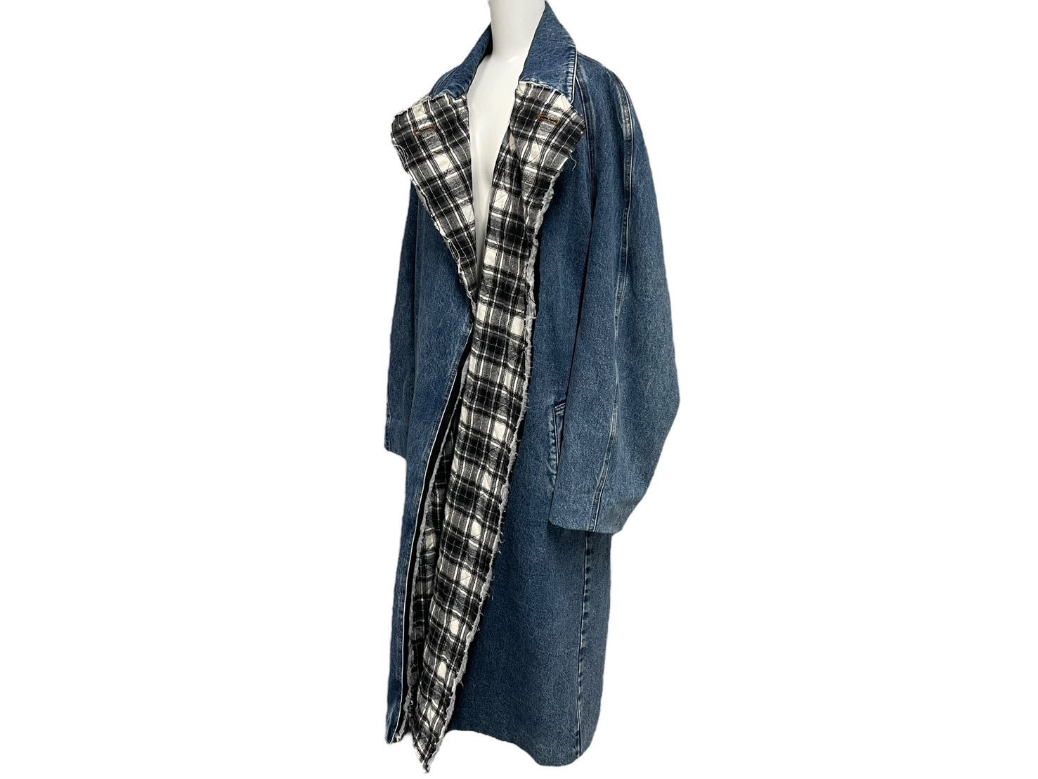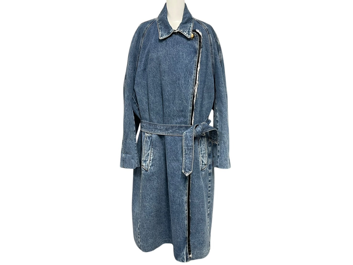 BALENCIAGA バレンシアガ デニムロングコート 556727 サイズ34 18AW 切りっぱなし ラグラン インディゴ コットン 美品 中古 4c070290