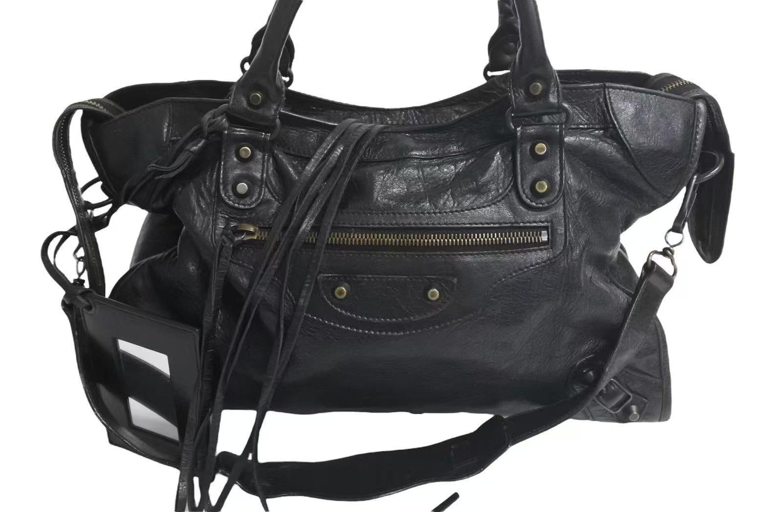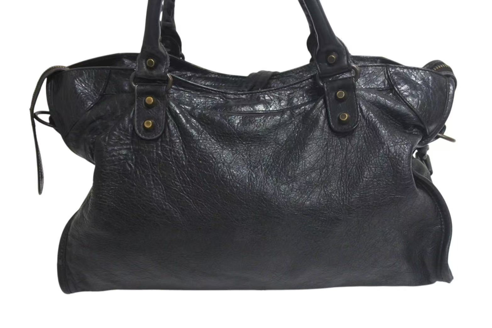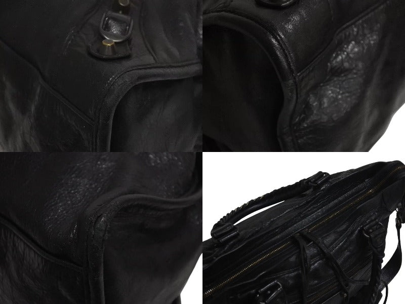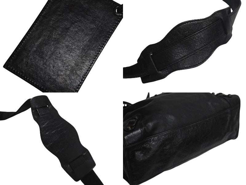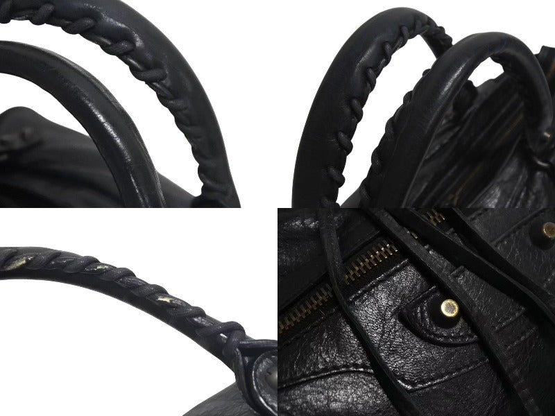 BALENCIAGA バレンシアガ LeCity ザシティ トートバッグ ハンドバッグ レザー ブラック アンティークゴールド金具 美品 中古 4c073966