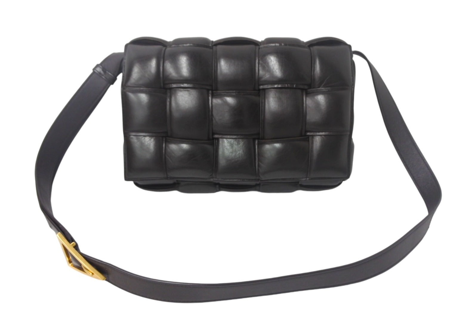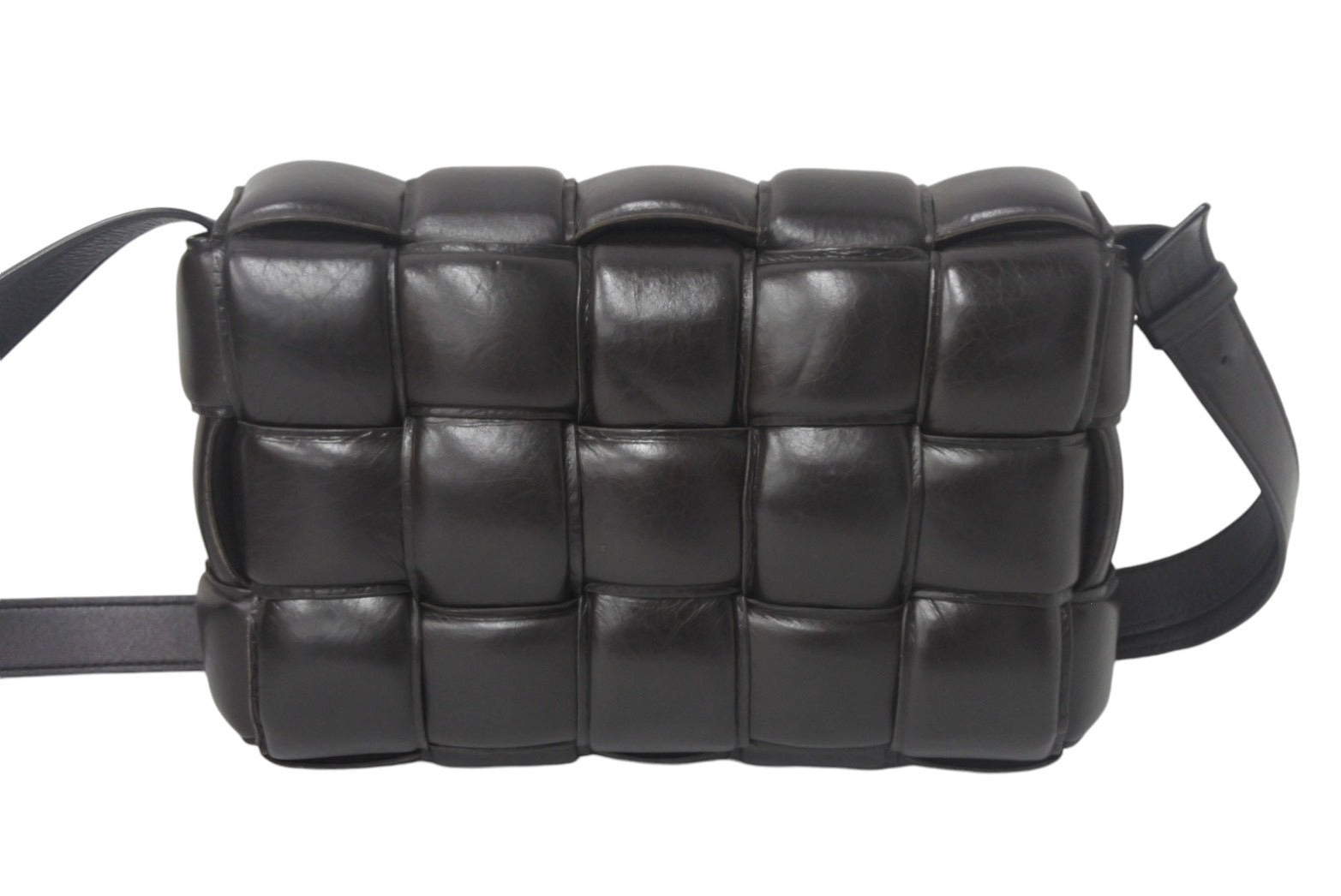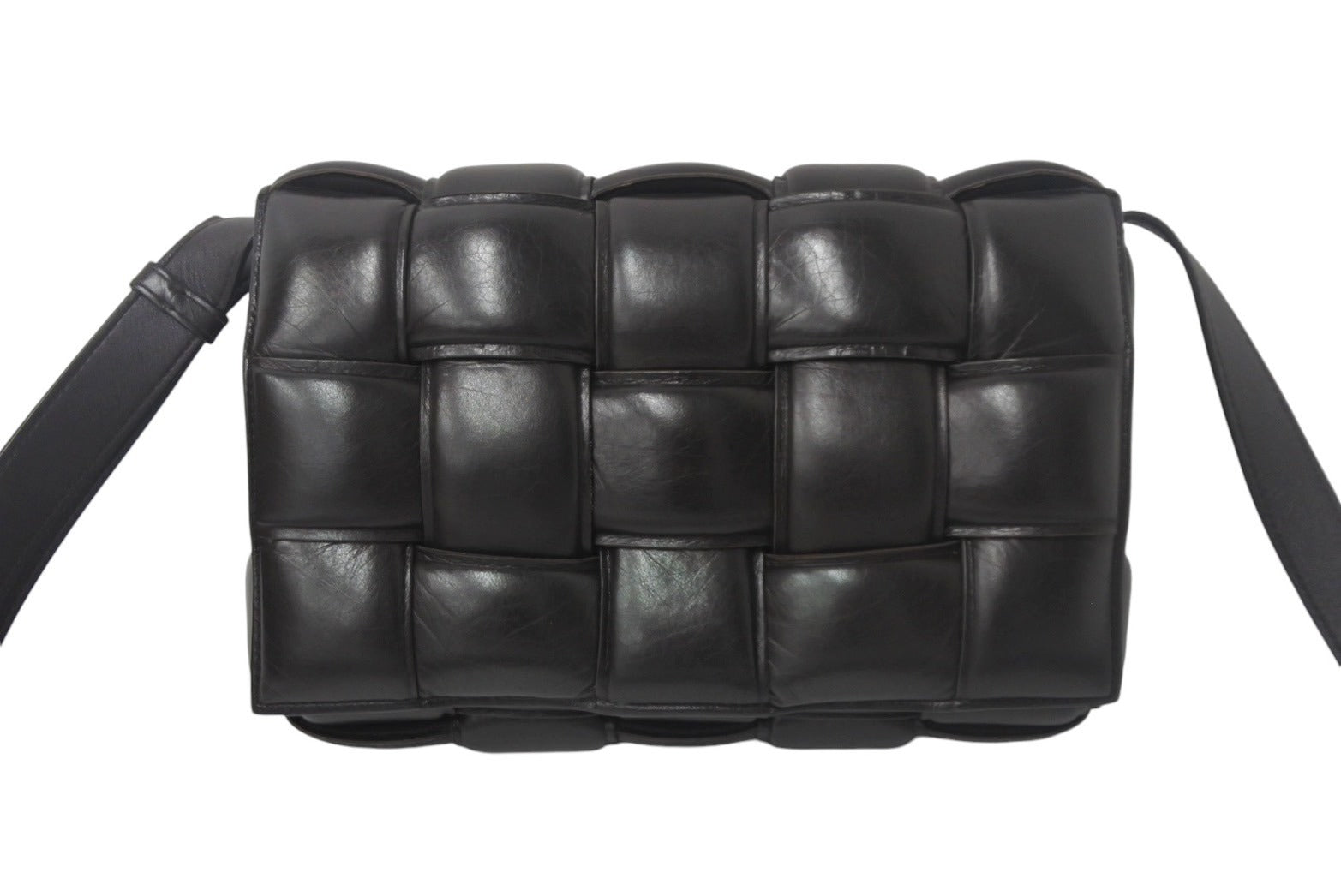 パディングを施したイントレチャートレザーのクロスボディバッグです。