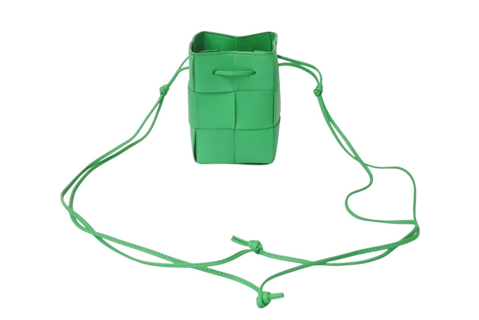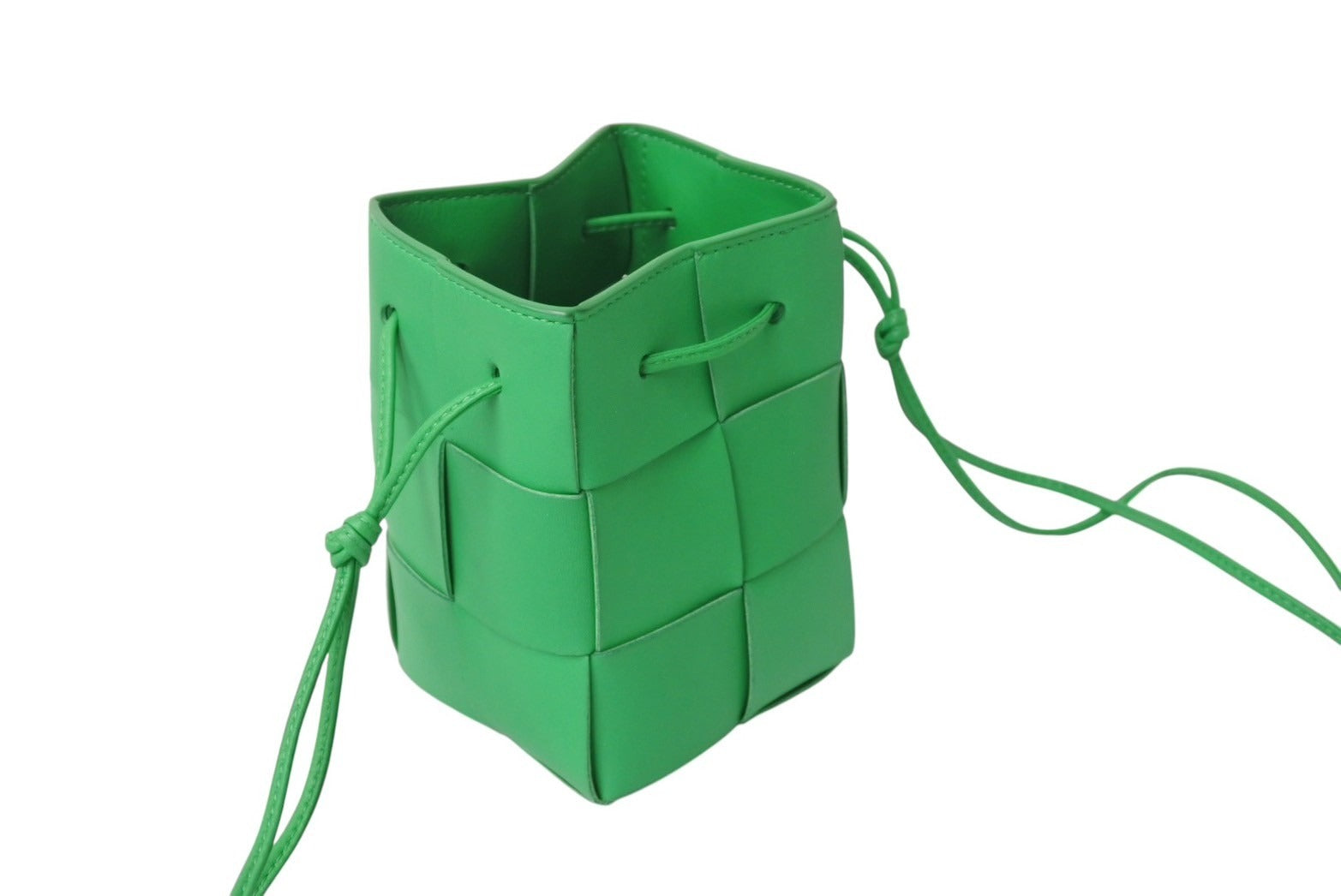 イントレチャートレザーのクロスボディバケットタイプのミニバッグです。