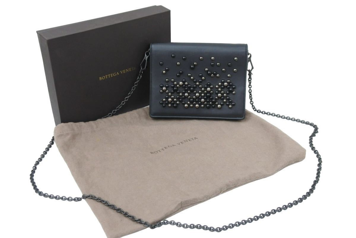 BOTTEGAVENETA ボッテガヴェネタ チェーンショルダーバッグ ウォレット ポシェット レザー ビーズ ブラック 美品 中古 50633