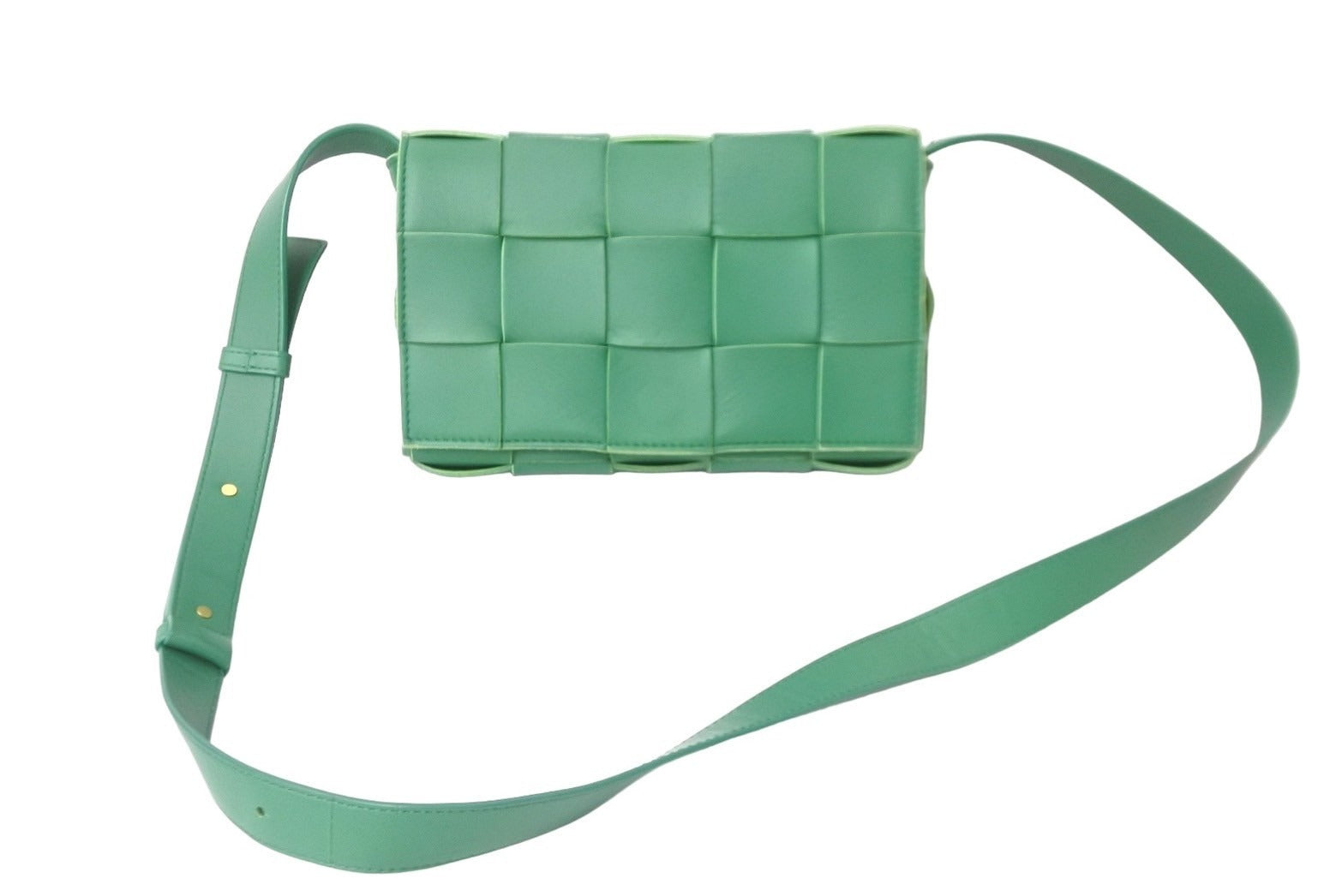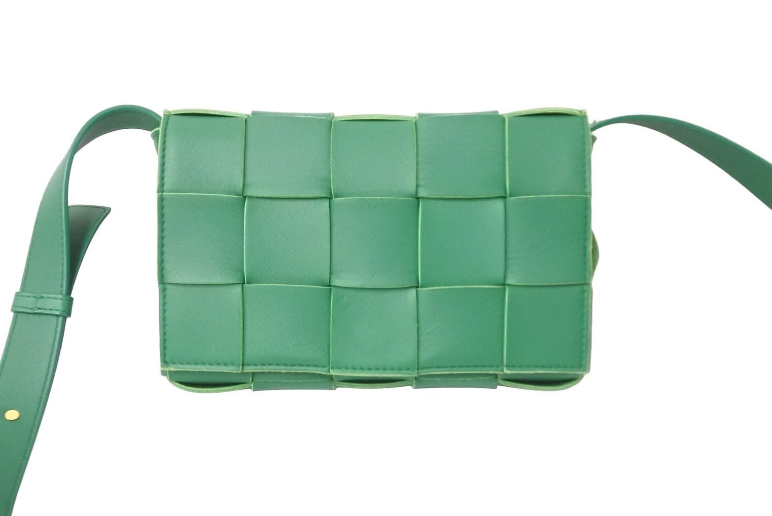 イントレチャート技法によるソフトなラムスキンレザーのクロスボディバッグです。