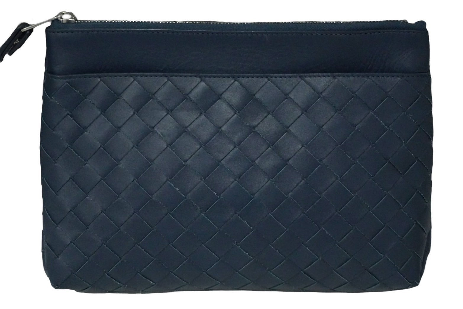 BOTTEGAVENETA ボッテガヴェネタ イントレチャート クラッチバッグ セカンドバッグ ネイビー シルバー金具 美品 中古 60267