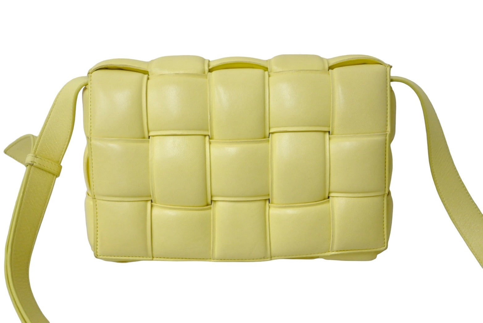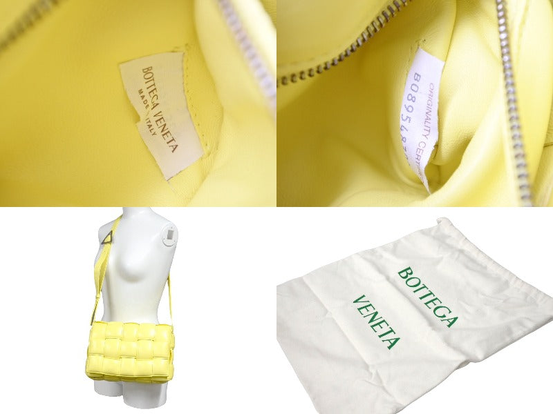 BOTTEGAVENETA ボッテガヴェネタ マキシ イントレチャート パデッド カセット ショルダーバッグ イエロー ラムスキン 591970VCQR1 シルバー金具 美品 中古 67148