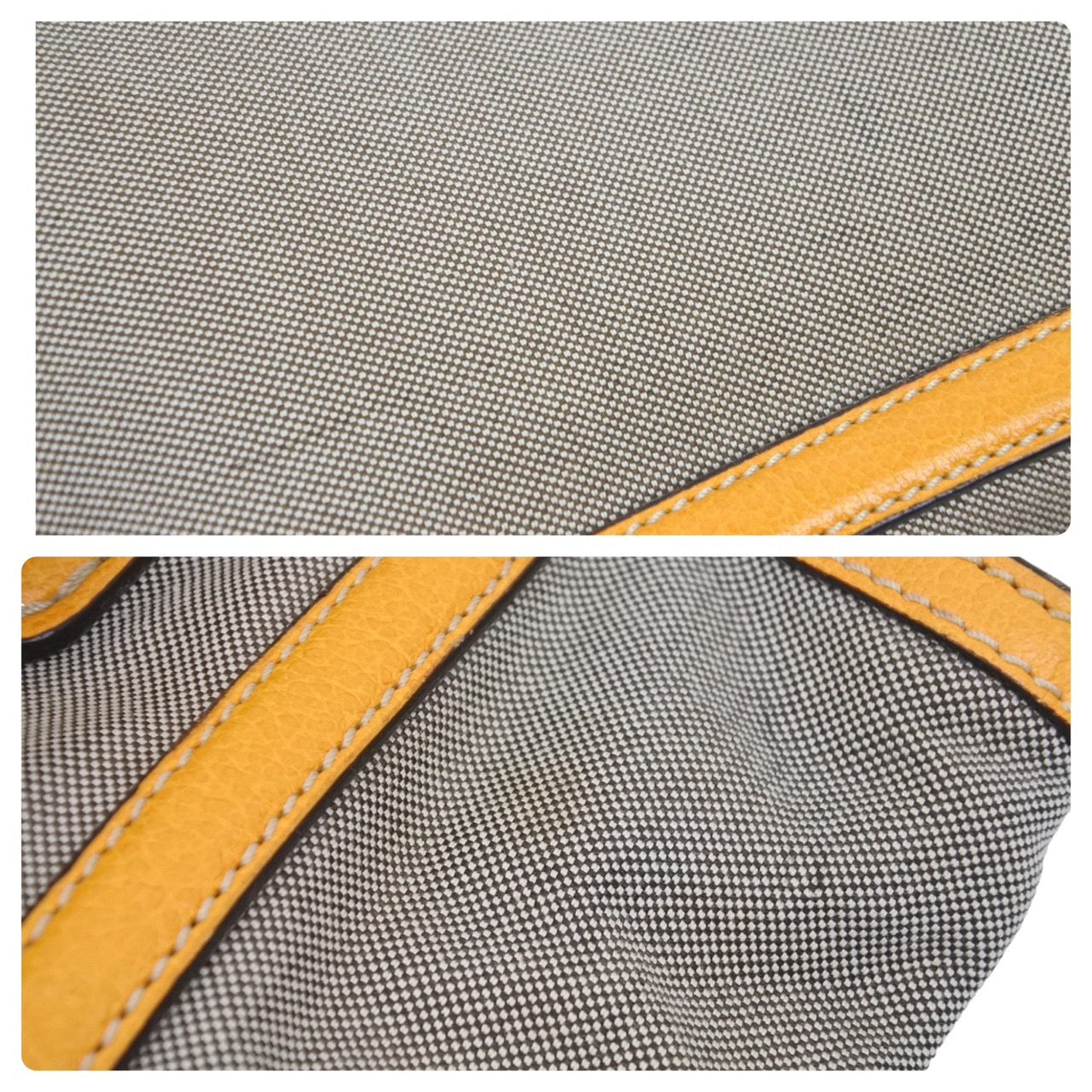 上品なキャンバス素材でベージュ×オレンジがアクセントになっているアイテムとなっています。