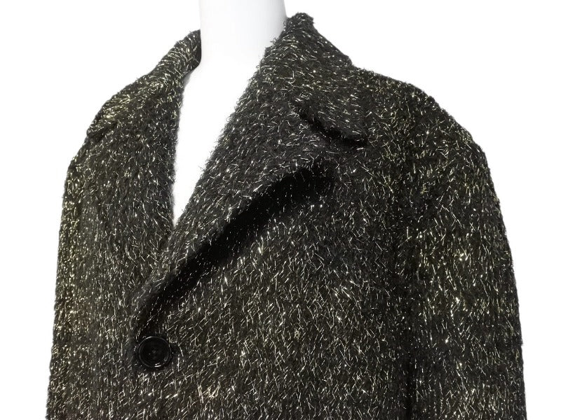 金属繊維による光沢感が目を惹く、非常にデザイン性の高いチェスターコートになります。