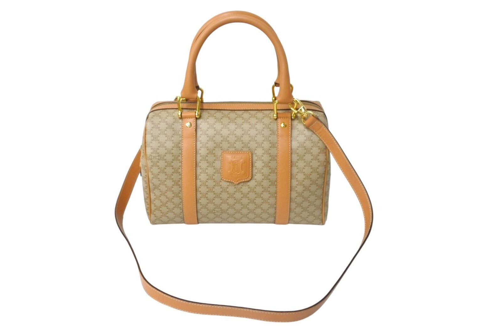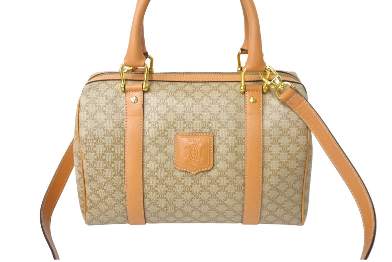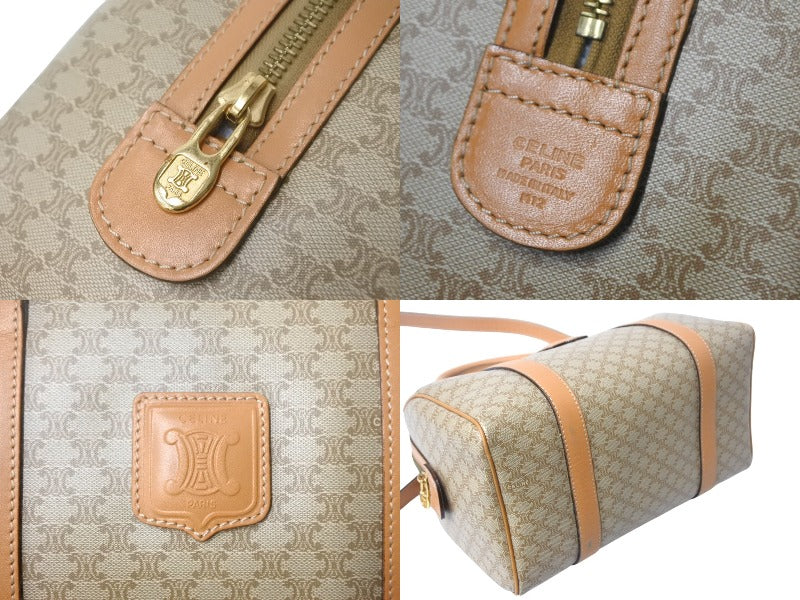 CELINE セリーヌ ハンドバッグ マカダム PVC レザー ベージュ ブラウン ゴールド金具 2WAYバッグ 美品 中古 4c069176