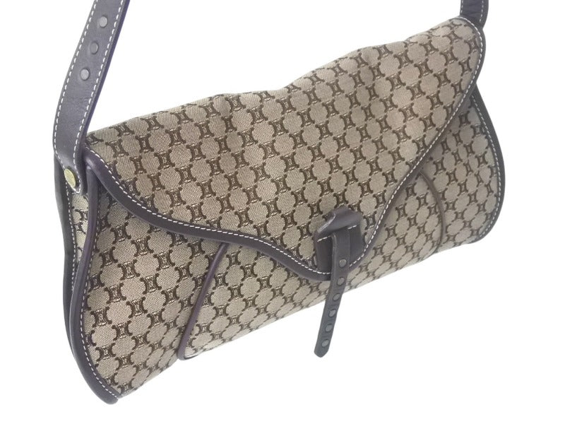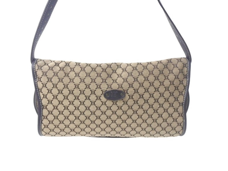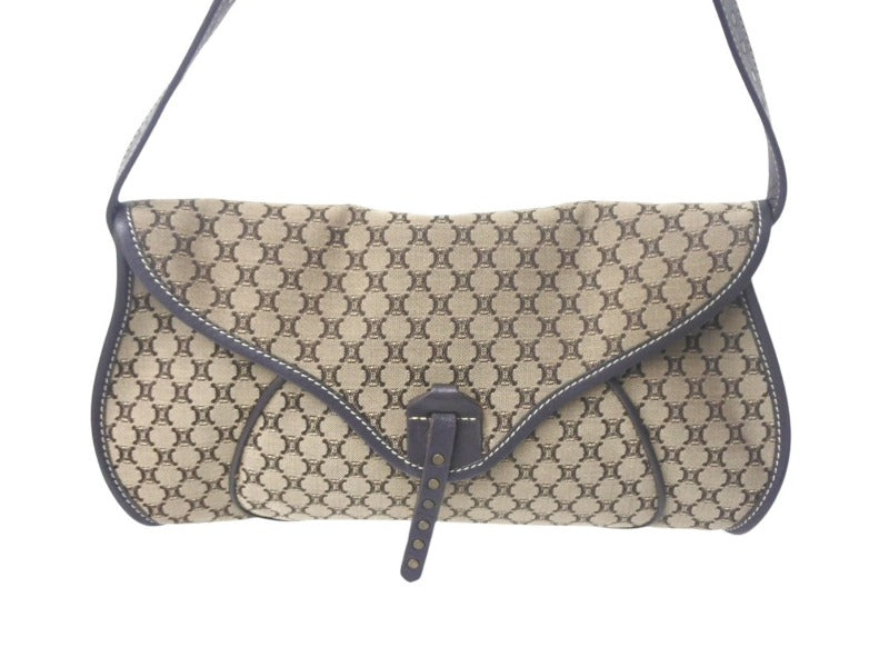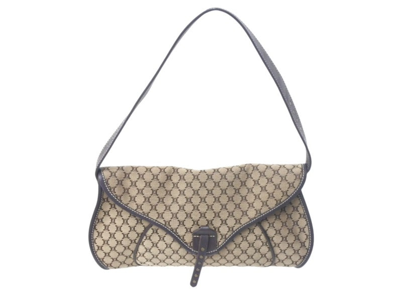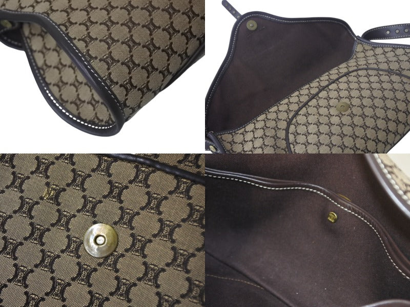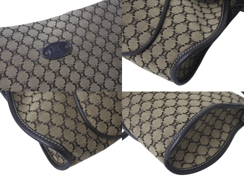 CELINE セリーヌ ハンドバッグ トリオンフ ベージュ ブラウン レザー コットンキャンバス ゴールド金具 美品 中古 4c68075