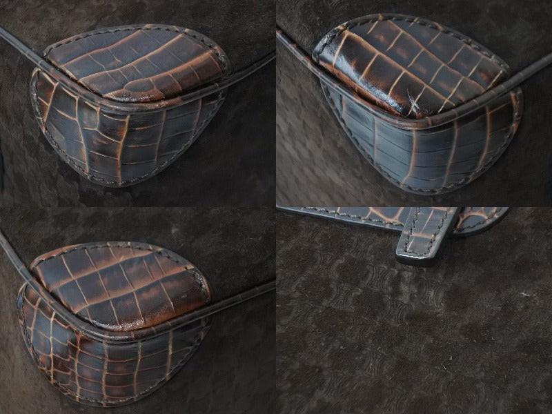 やや型崩れ、スエード剝がれ、金具傷あり、裏面若干ベタ付き、中古品としてご使用頂ける状態です。
