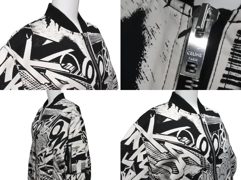 極美品 CELINE セリーヌ ジャケット 19ss ブルゾン クリスチャン・マークレー 2W020474E サイズM シルバー金具 中古 52726