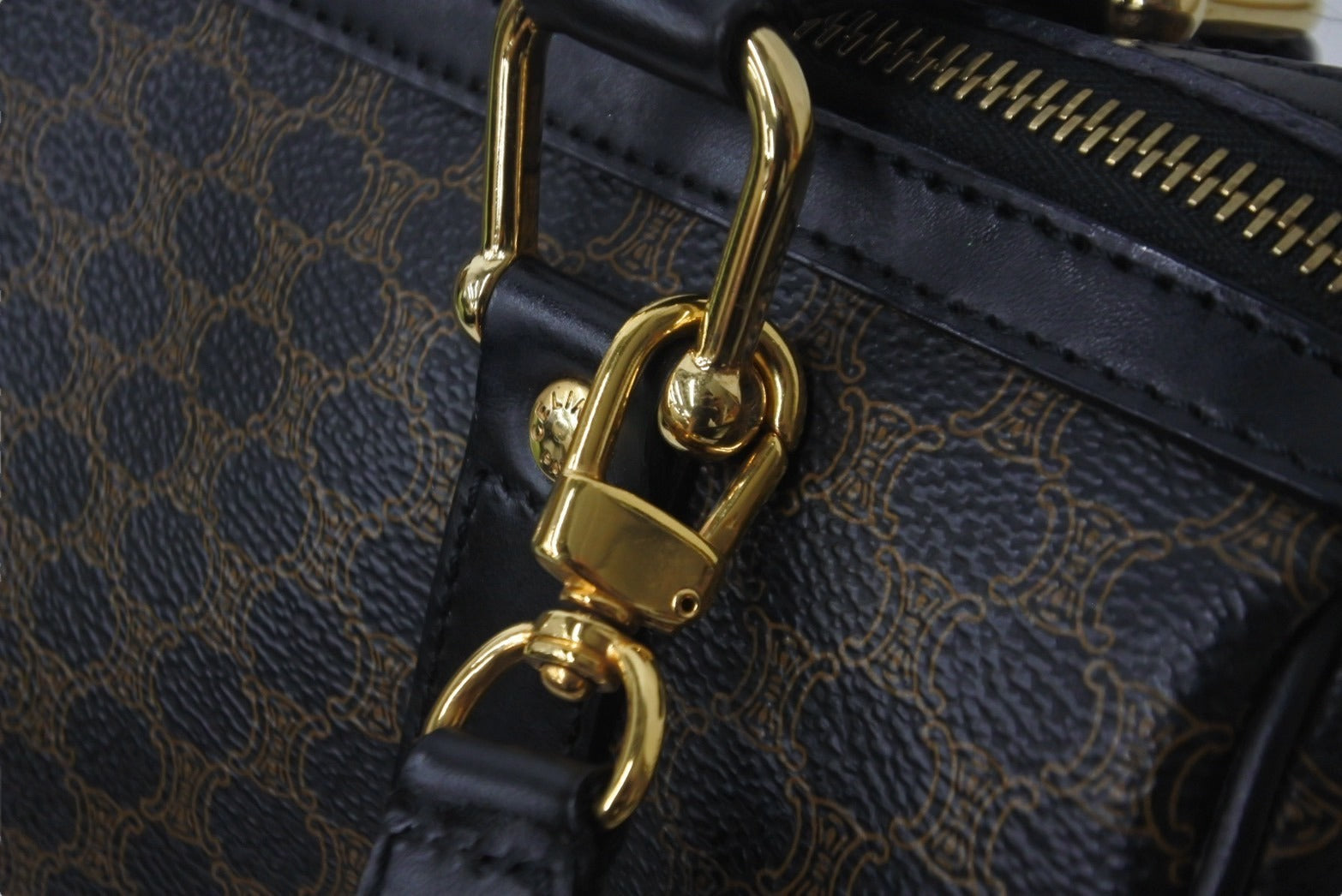CELINE セリーヌ マカダム ハンドバッグ ミニボストンバッグ PVC レザー ブラック ブラウン ゴールド金具 美品 中古 58004