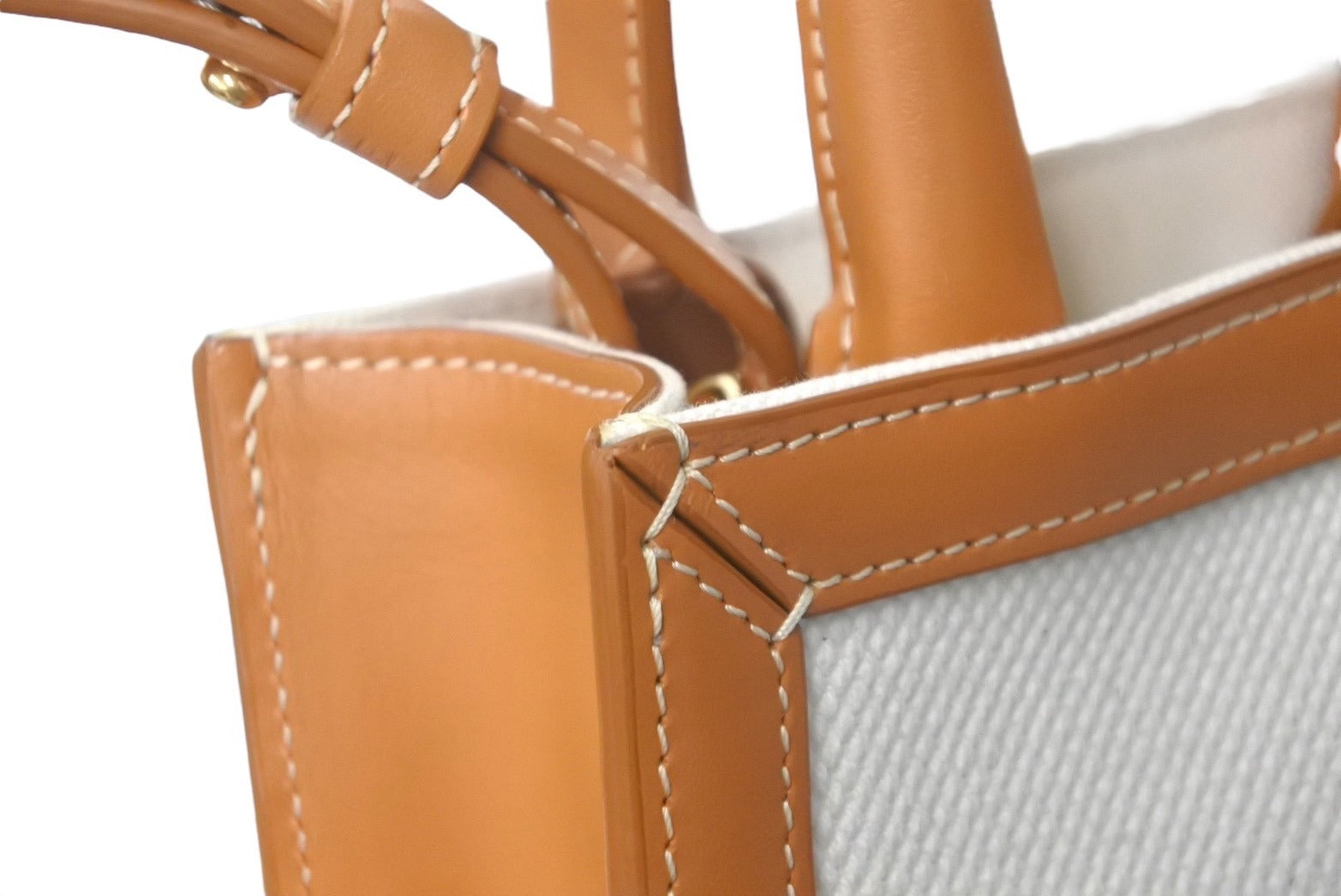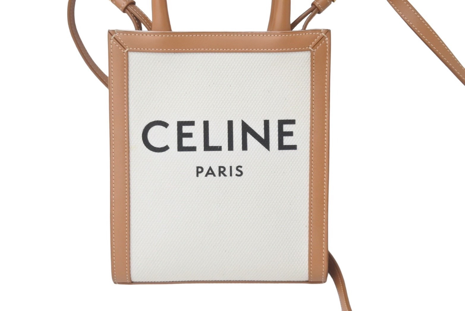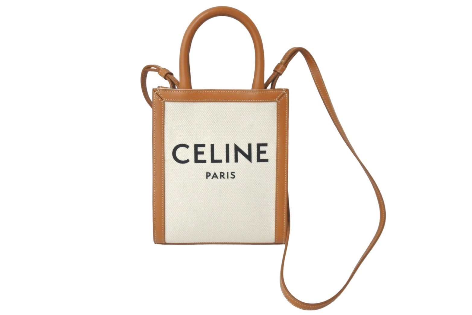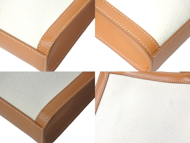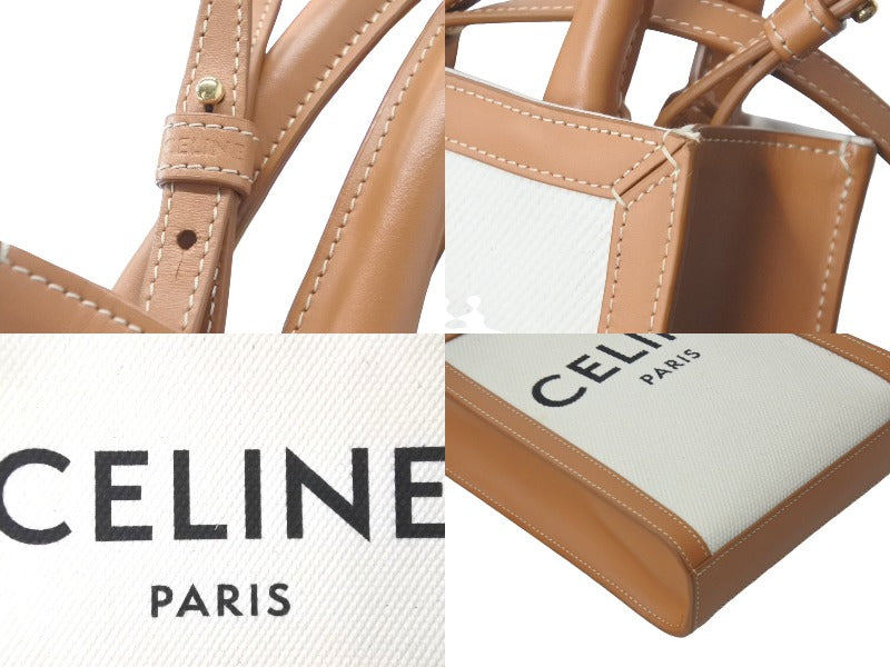 極美品 CELINE セリーヌ 2WAYショルダーバッグ ミニバーティカルカバ コットンキャンバス レザー ベージュ 美品 中古 60684