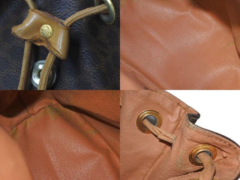 背面下部シワあり。パイピング部分にスレ、シミ、割れ、剥がれあり。ハンドル部分、ショルダー部分にコバ割れ、コバ剥がれ、汚れ、スレ、ひび割れ、シワあり。金具部分にメッキ剥がれ、スレ、小傷あり。開閉部分の紐のレザーに切れ、スレ、傷あり。内側汚れあり。中古品としてご使用いただける状態です。
