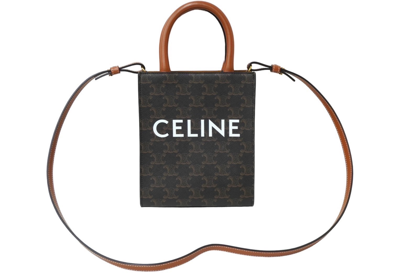 極美品 CELINE セリーヌ ショルダーバッグ ミニ バーティカル トリオンフ キャンバス 194372BZK.04LU ロゴプリント 中古 62392