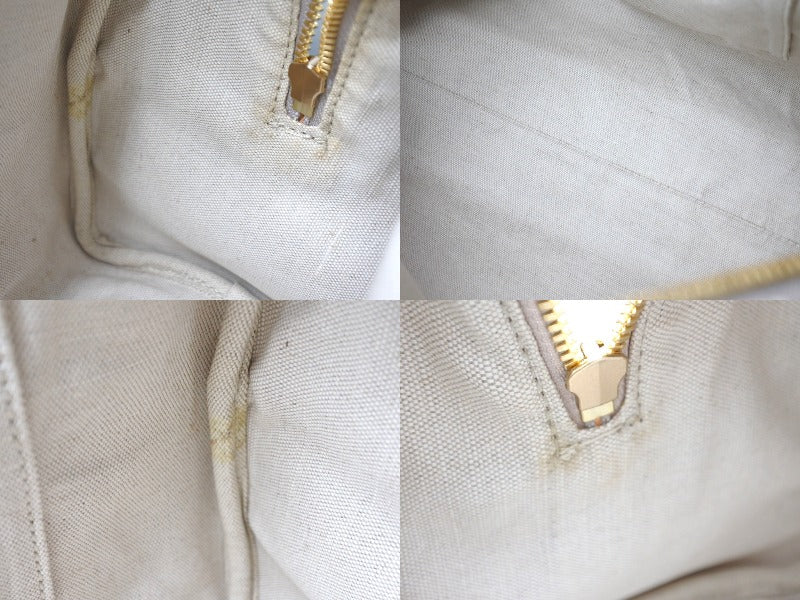 底面パイピングに僅かなスレがあり、ハンドル使用感があります。金具部分に小傷があり、ヌメ革に僅かな汚れがあります。内側ファスナーに汚れがありますが、その他目立った傷や汚れの少ないアイテムです。