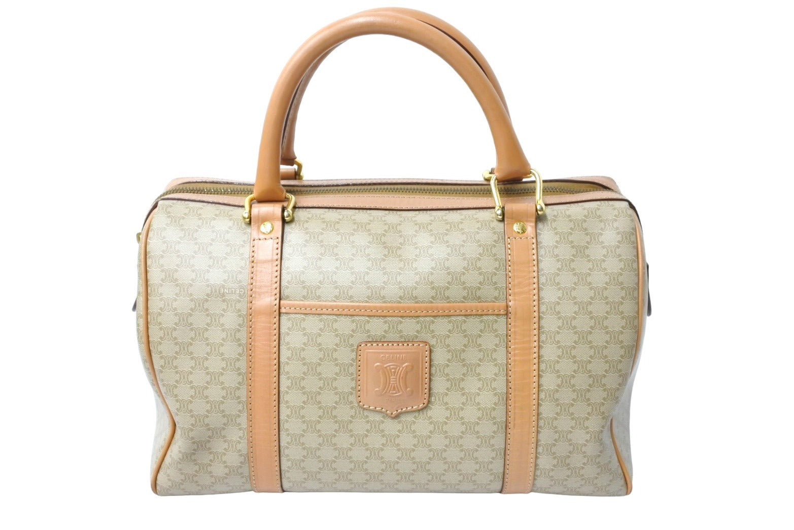 CELINE セリーヌ ハンドバッグ ミニボストンバッグ マカダム柄 ベージュ PVC レザー ゴールド金具 M15/2 美品 中古 65568