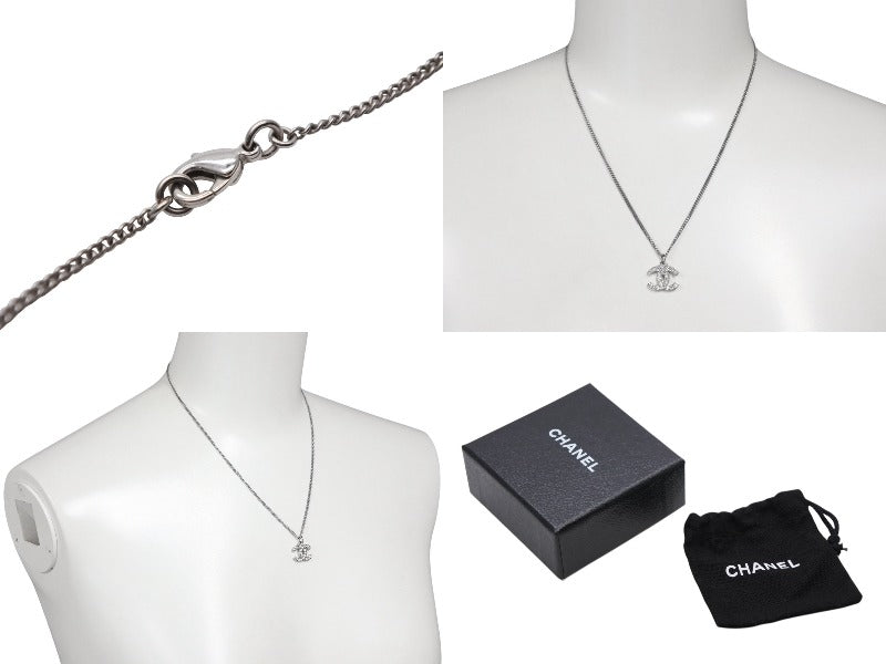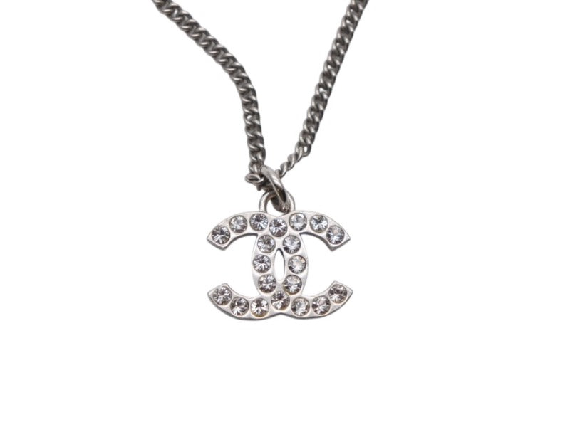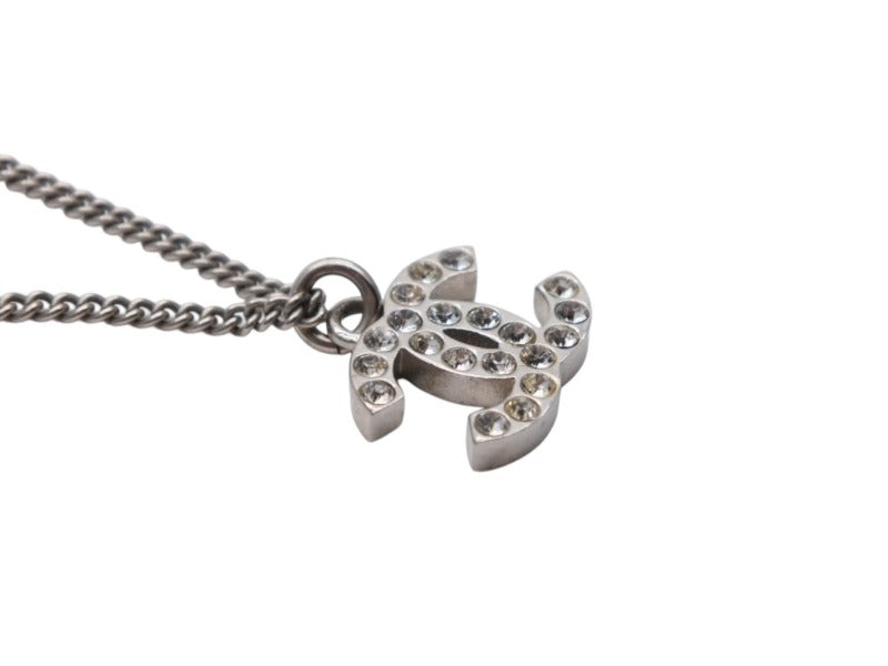 CHANEL シャネル ココマーク ラインストーン ネックレス 重量約5.0g F14V刻印 全長約46cm シルバー メタル 美品 中古 4b006457