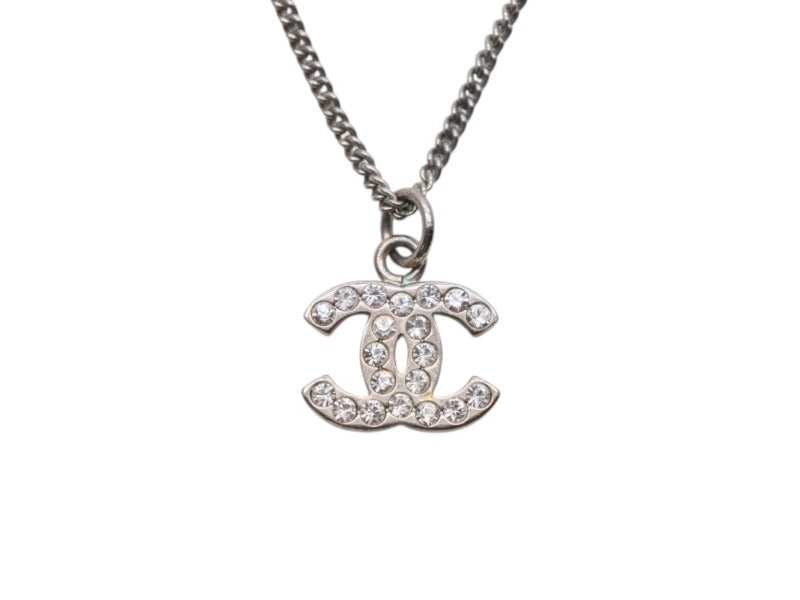 CHANEL シャネル ココマーク ラインストーン ネックレス 重量約5.8g 08V刻印 全長約46cm シルバー メタル 美品 中古 4b006480