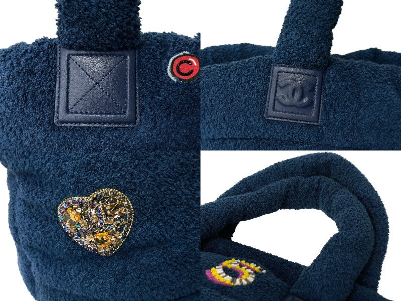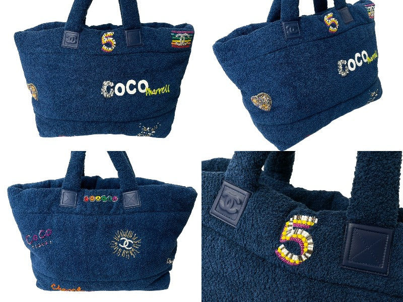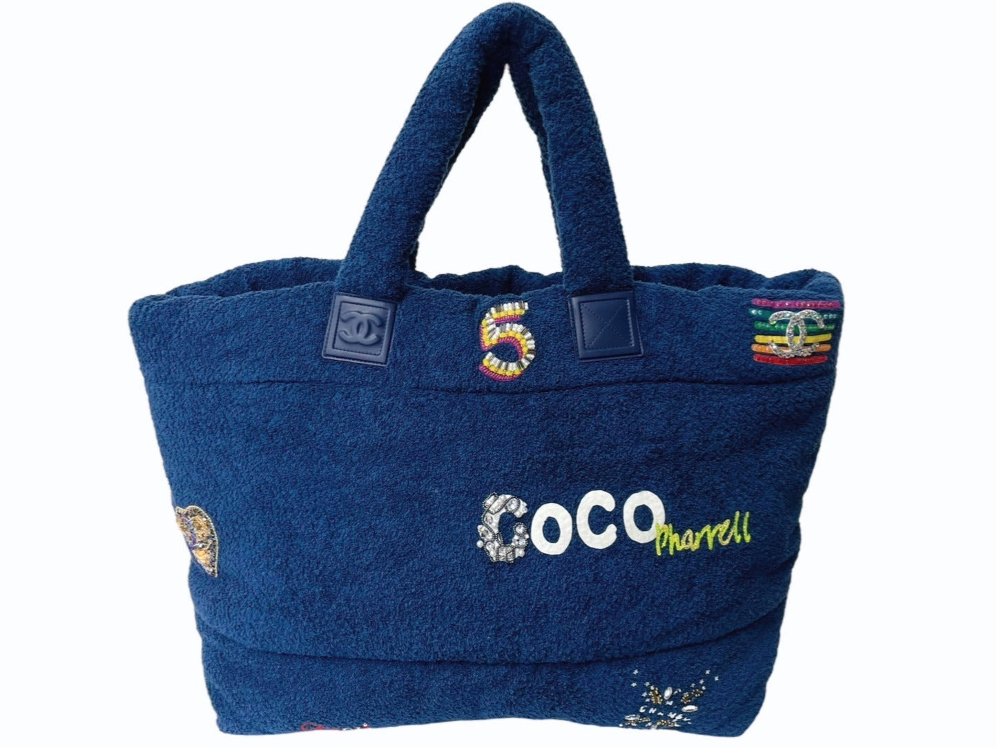 極美品 CHANEL シャネル ファレルウィリアムス コココクーン トートバッグ ラージサイズ 27番台 ブルー パイル 中古 4c067533