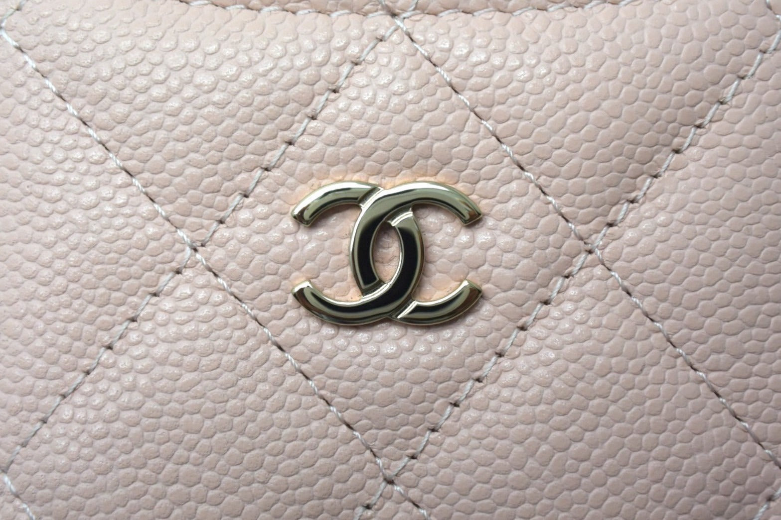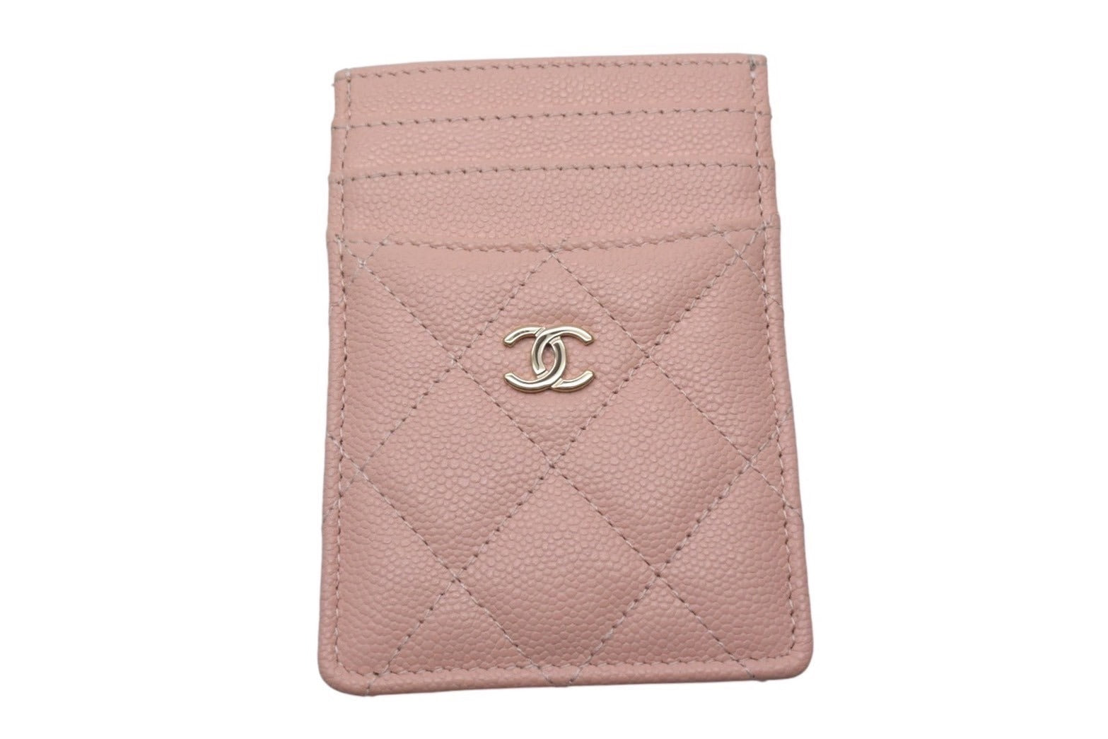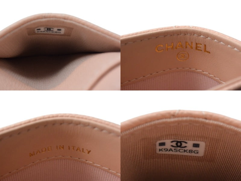 極美品 CHANEL シャネル カードケース ランダム番台 ココマーク キャビアスキン キルティング ピンク 中古 4c067788