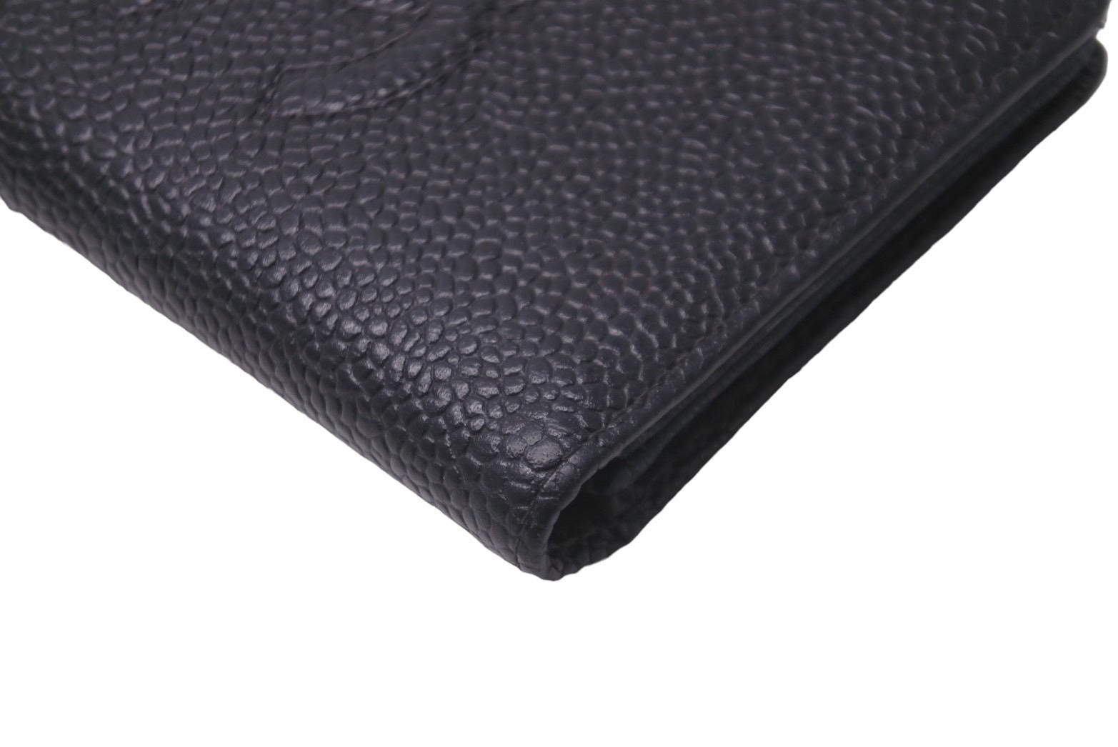 高級感漂うキャビアスキン素材を使用した上品なデザイン☆マチ付きポケット、カードポケット6枚、他ポケットが備わり、収納力も抜群。