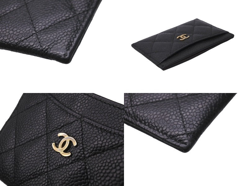 CHANEL シャネル ココマーク カードケース 18番台 キャビアスキン ブラック ゴールド金具 美品 中古 62132