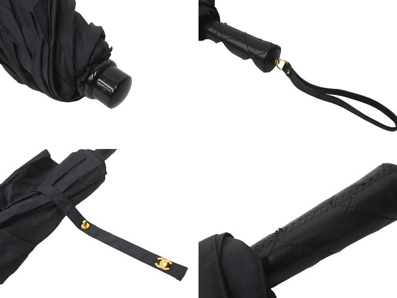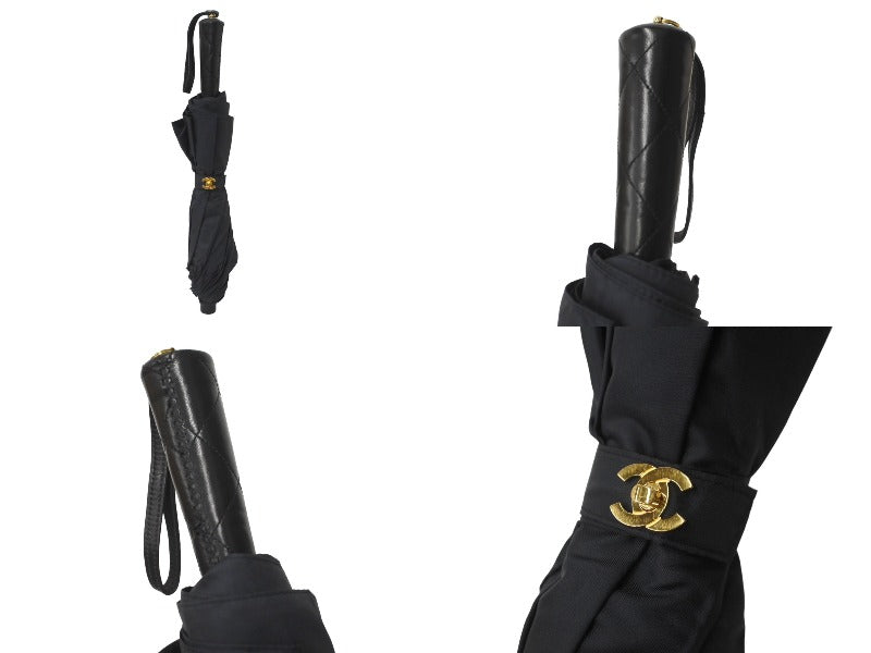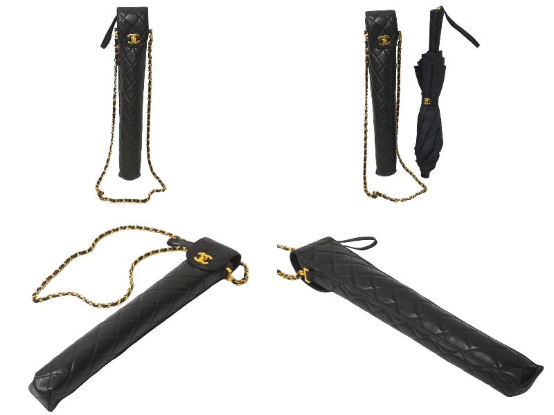 CHANEL シャネル マトラッセ チェーン ショルダー 傘 折り畳み傘 A05602X03921 95A ラムスキン ブラック 美品 中古 62606