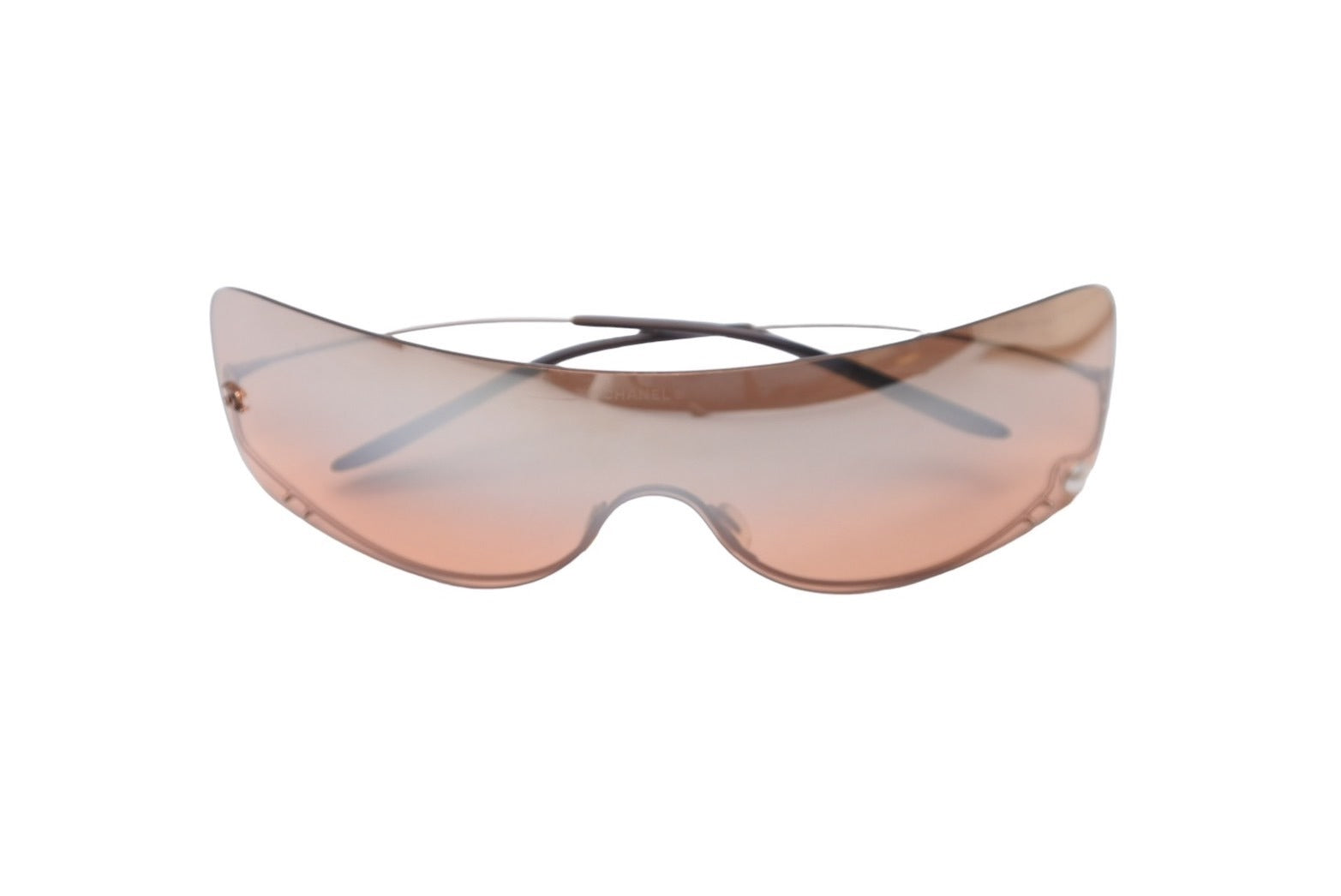 CHANEL シャネル リムレス シールド パール サングラス オレンジ 4077-H ココマーク アイウェア 小物 眼鏡 ロゴ 美品 中古 63641