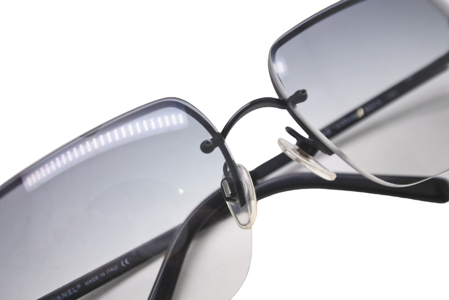 極美品 CHANEL シャネル サングラス ココマーク ラインストーン リムレス グラデーションレンズ スクエア ブラック 中古 63841