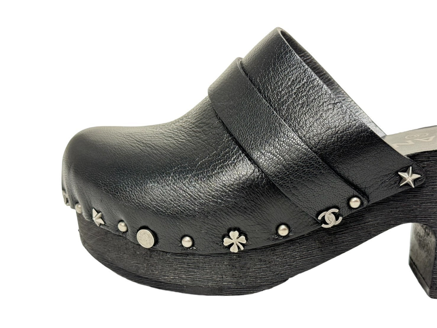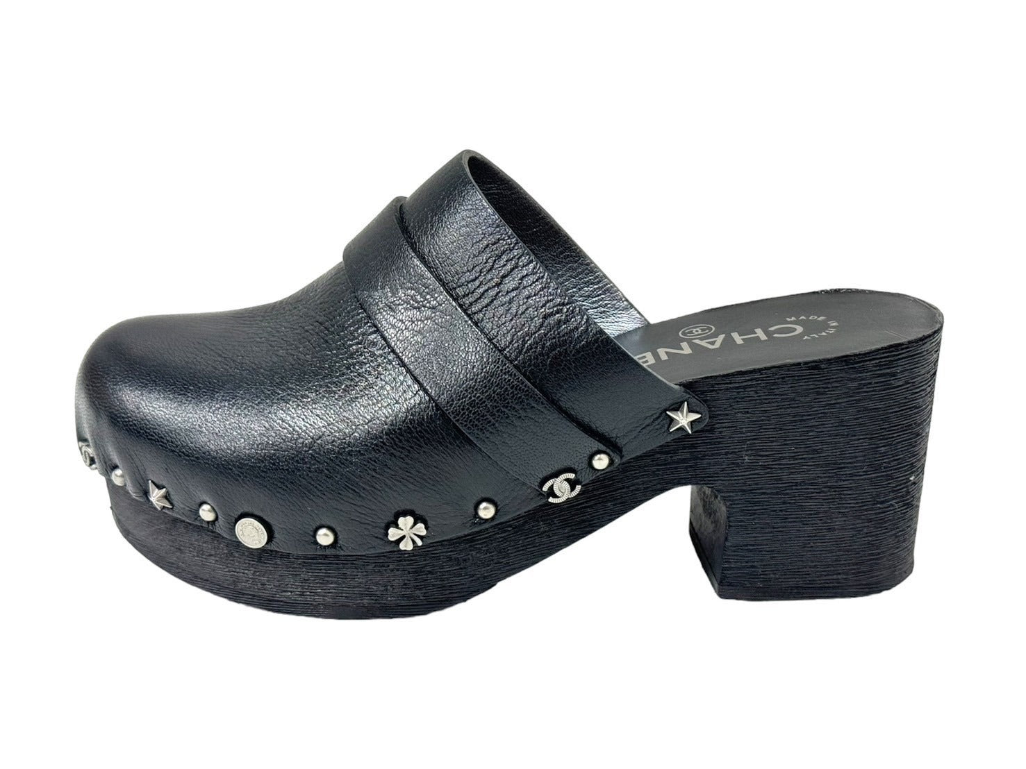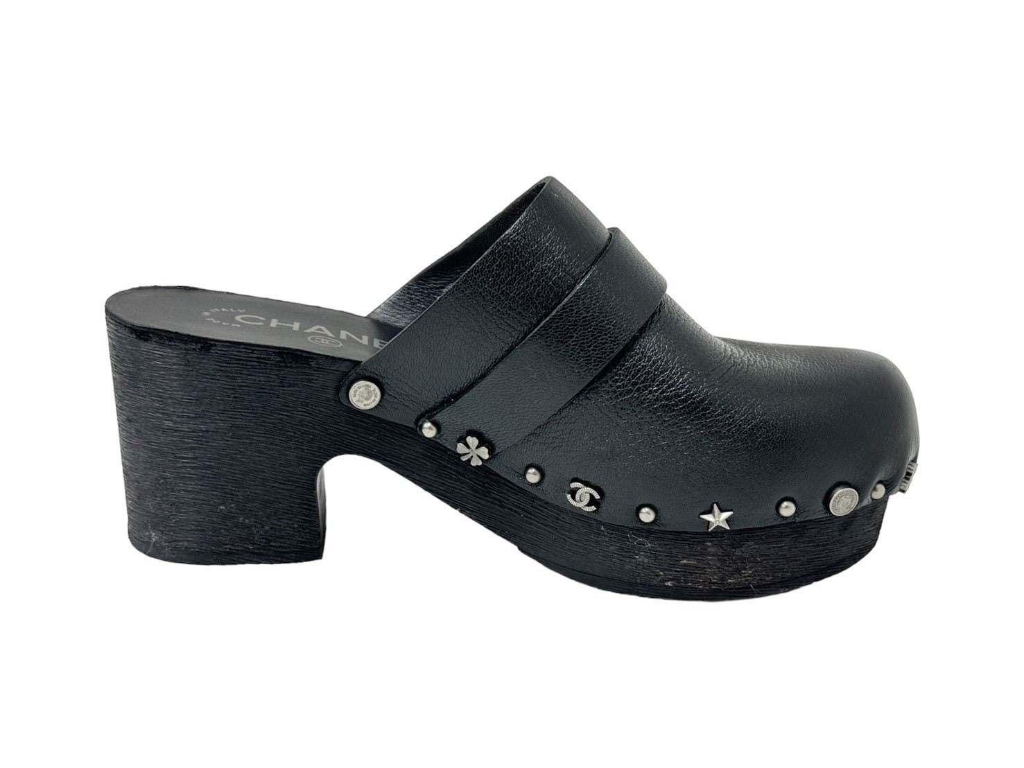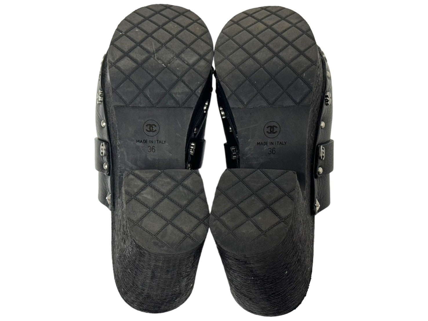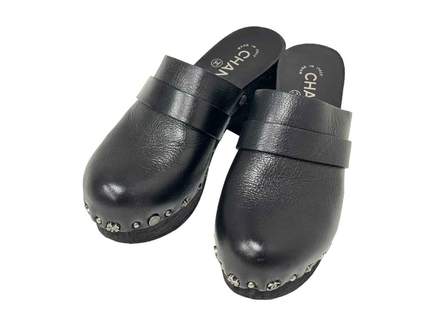 極美品 CHANEL シャネル サボサンダル ミュール サイズ36 ココマーク スタッズ クローバー メダル 星 レザー 中古 66769