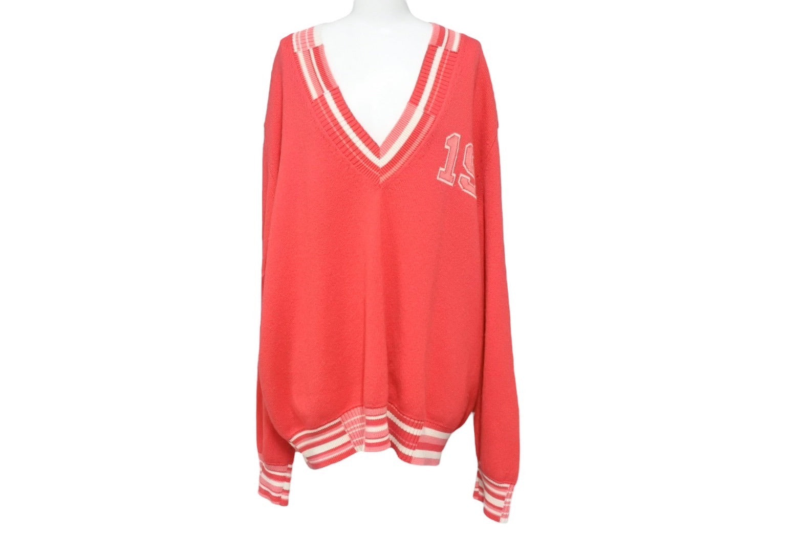 毛羽立ち、毛玉あり。右袖汚れあり。左脇付近に多少の汚れあり。その他特に目立つ傷や汚れのない状態です。