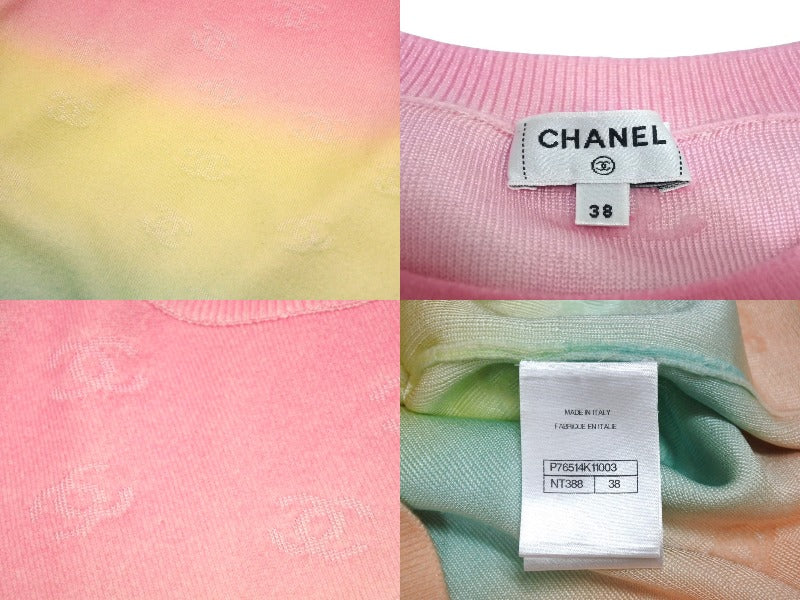 新品同様 CHANEL シャネル ニットセーター P76514K11003 サイズ38 ボーダー グラデーション ココマーク ボタン 中古 67002