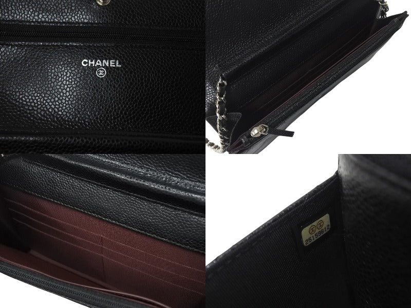 新品未使用 CHANEL シャネル チェーンウォレット 長財布 AP0250 25番台 ココマーク キャビアスキン ブラック 中古 4b000186