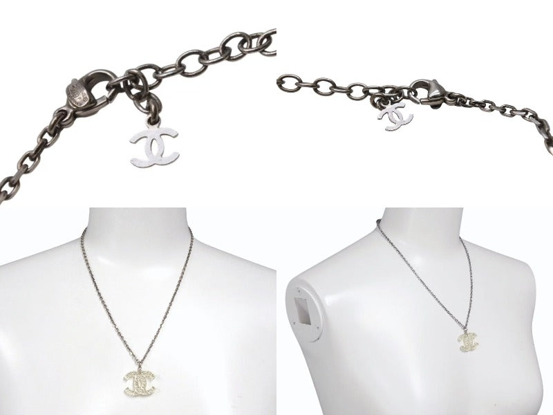 極美品 CHANEL シャネル クリアラインストーンココマークネックレス 05P刻印 重量約8.7g メタル レジン シルバー 中古 4b001063