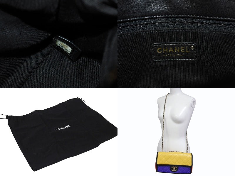 CHANEL シャネル マトラッセ チェーンショルダーバッグ CCロゴ マルチカラー カーフ ゴールド金具 中古 4b001194