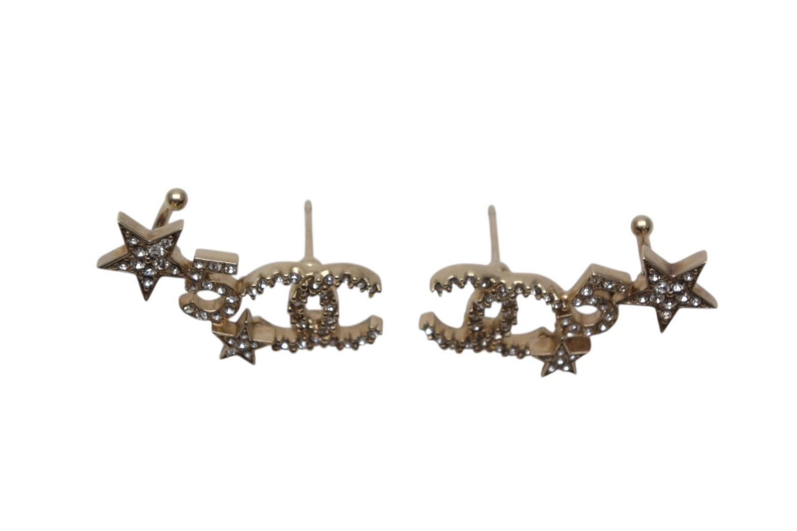極美品 CHANEL シャネル ラインストーン ココマーク スター No5 ピアス C22S 両耳用 ゴールド 重量約5.6g 中古 4b001979