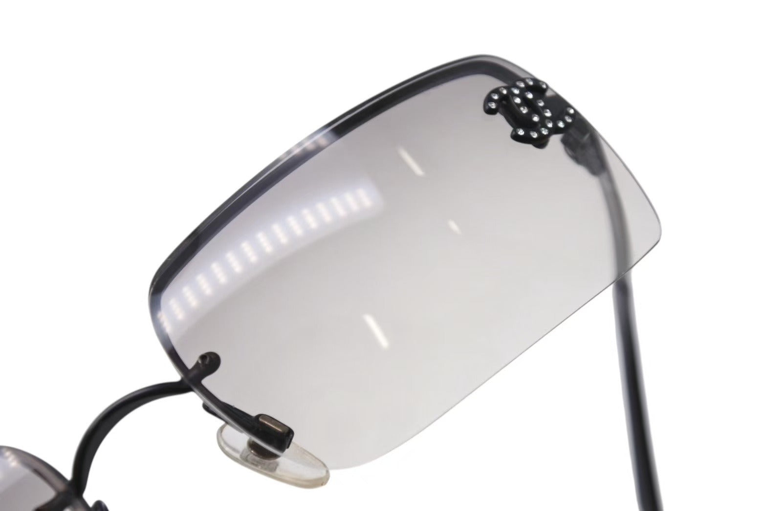 リムレスタイプでサイドにラインストーンが施されたココマークが特徴的の可愛らしいアイウェアです。