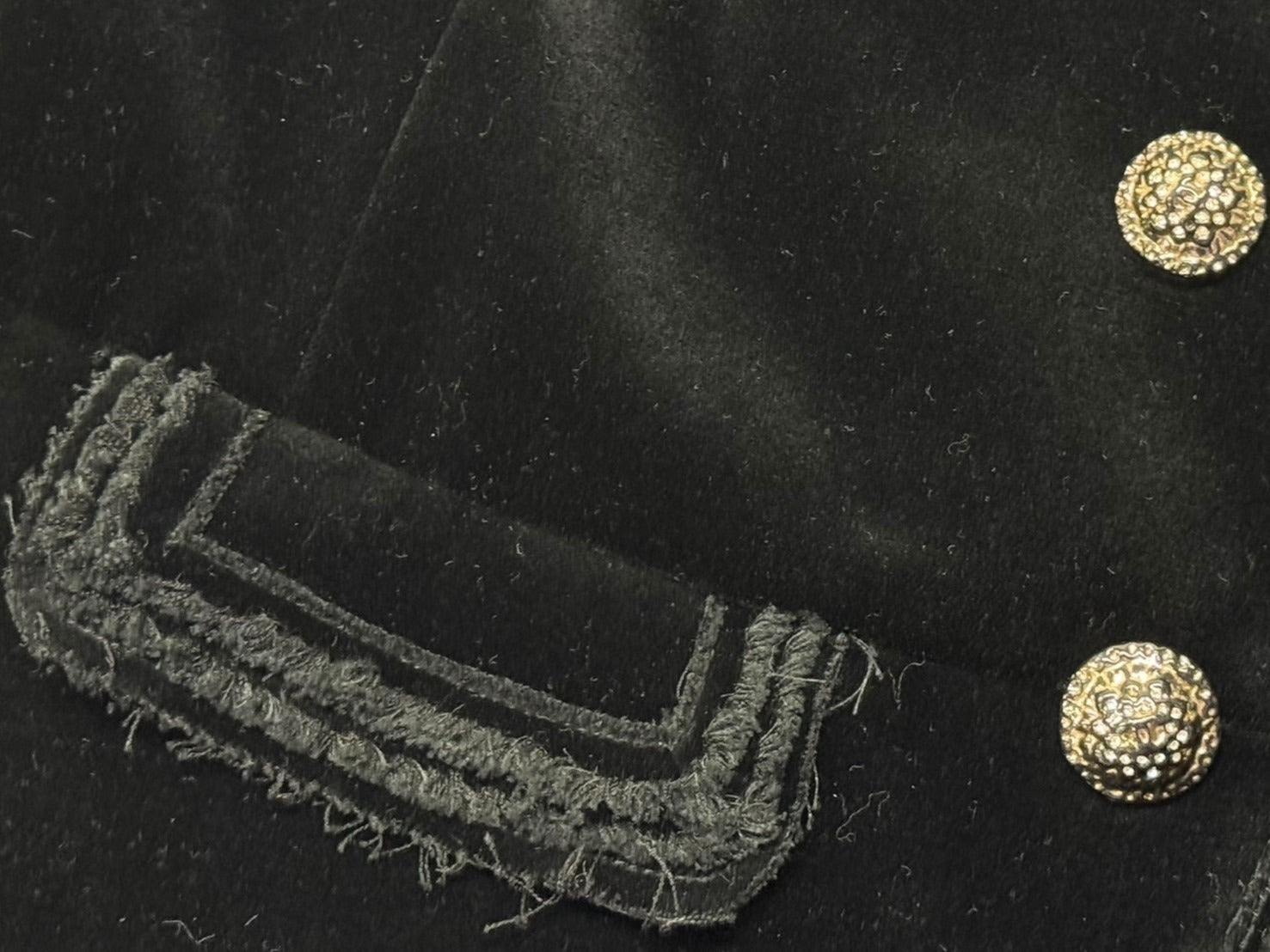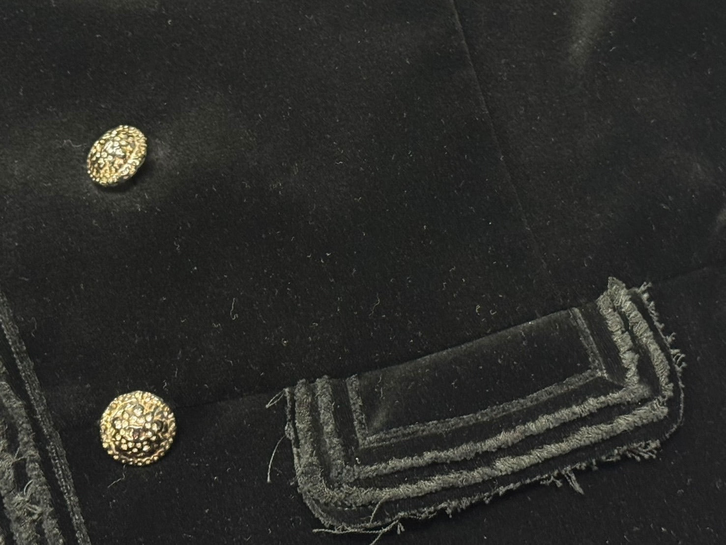 ココマーク装飾に多少の色剥がれあり。袖口に糸ほつれあり。襟元に少しのスレあり。その他目立つ傷や汚れの少ない美品です。