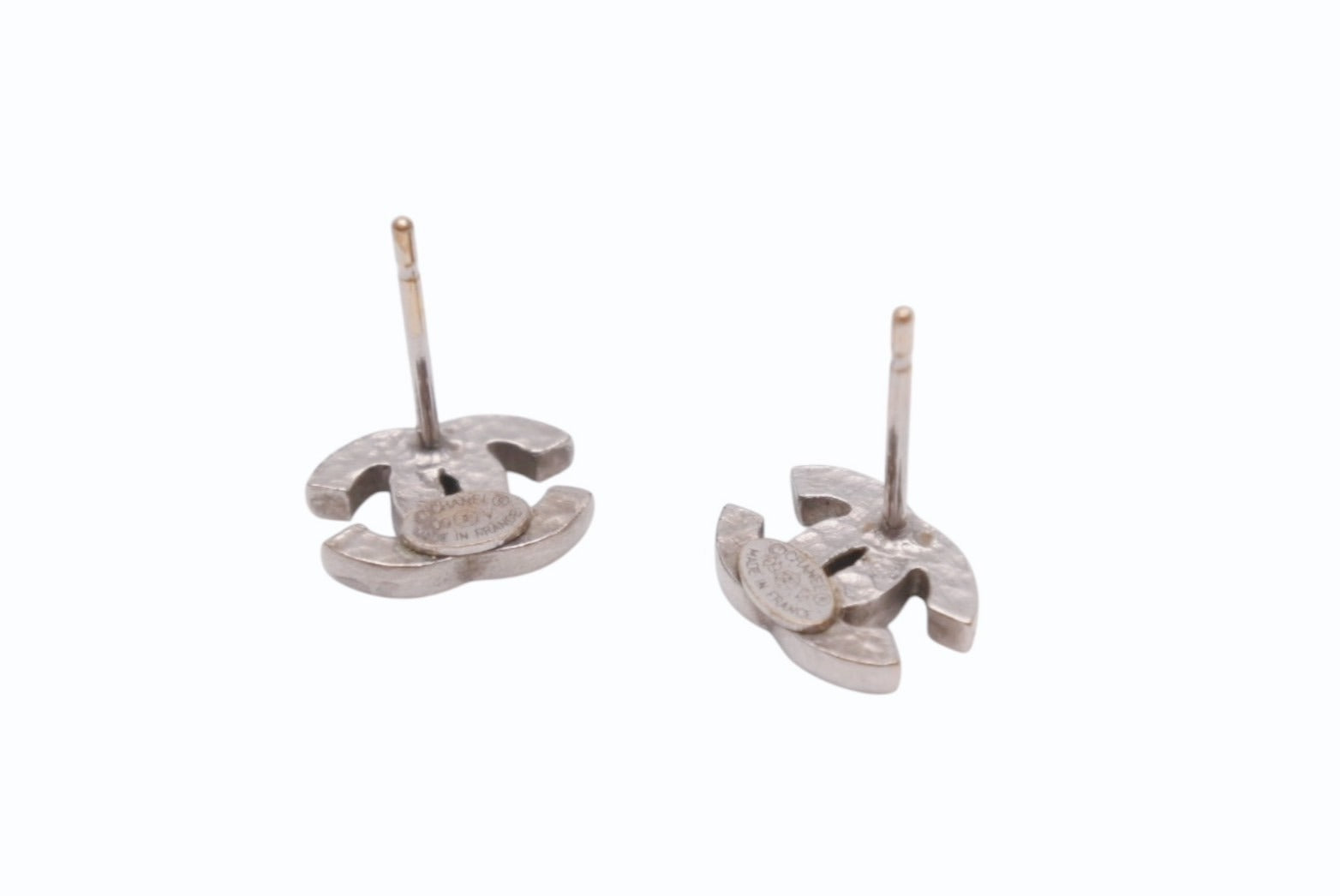 極美品 CHANEL シャネル ピアス ココマーク 両耳 09V刻印 メタル ラインストーン シルバー 0.8g 中古4b002822