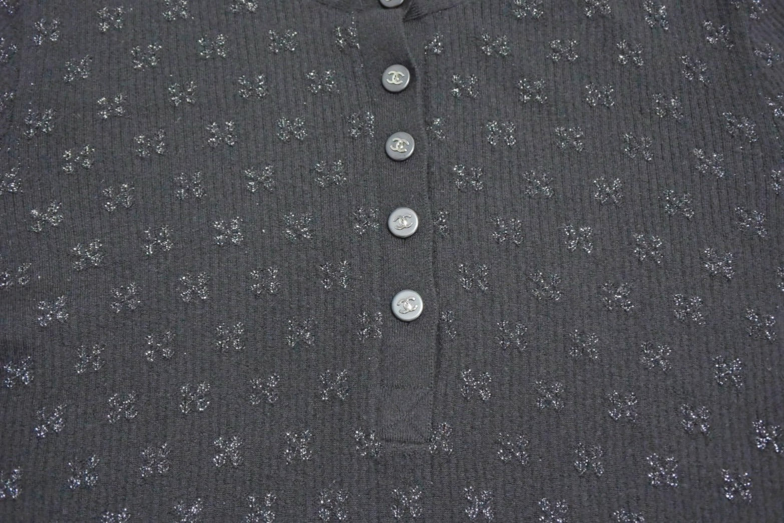 ココマークボタンやヘンリーネックデザイン、総柄デザインなど、とてもデザイン性の高いトップスです。ブラックカラーで様々なスタイルに合わせやすく、品と高級感のあるアイテムです。
